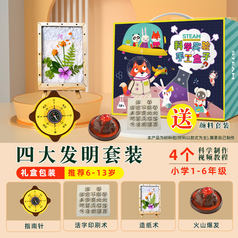 고대 네 가지 발명품 DIY 수공예 재료 세트 종이 제조 과학 실험 활자 인쇄 어린이 7-14세용