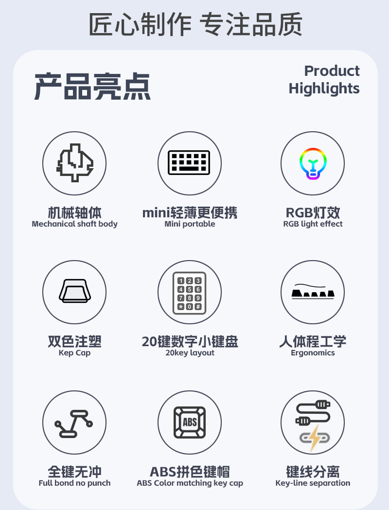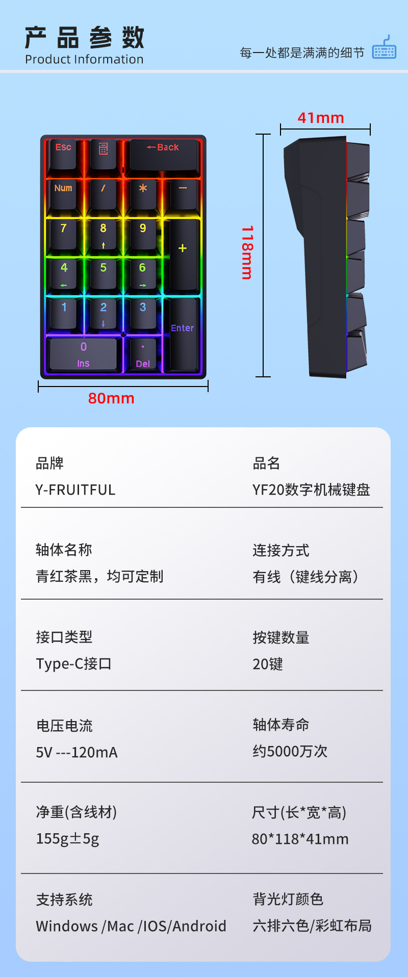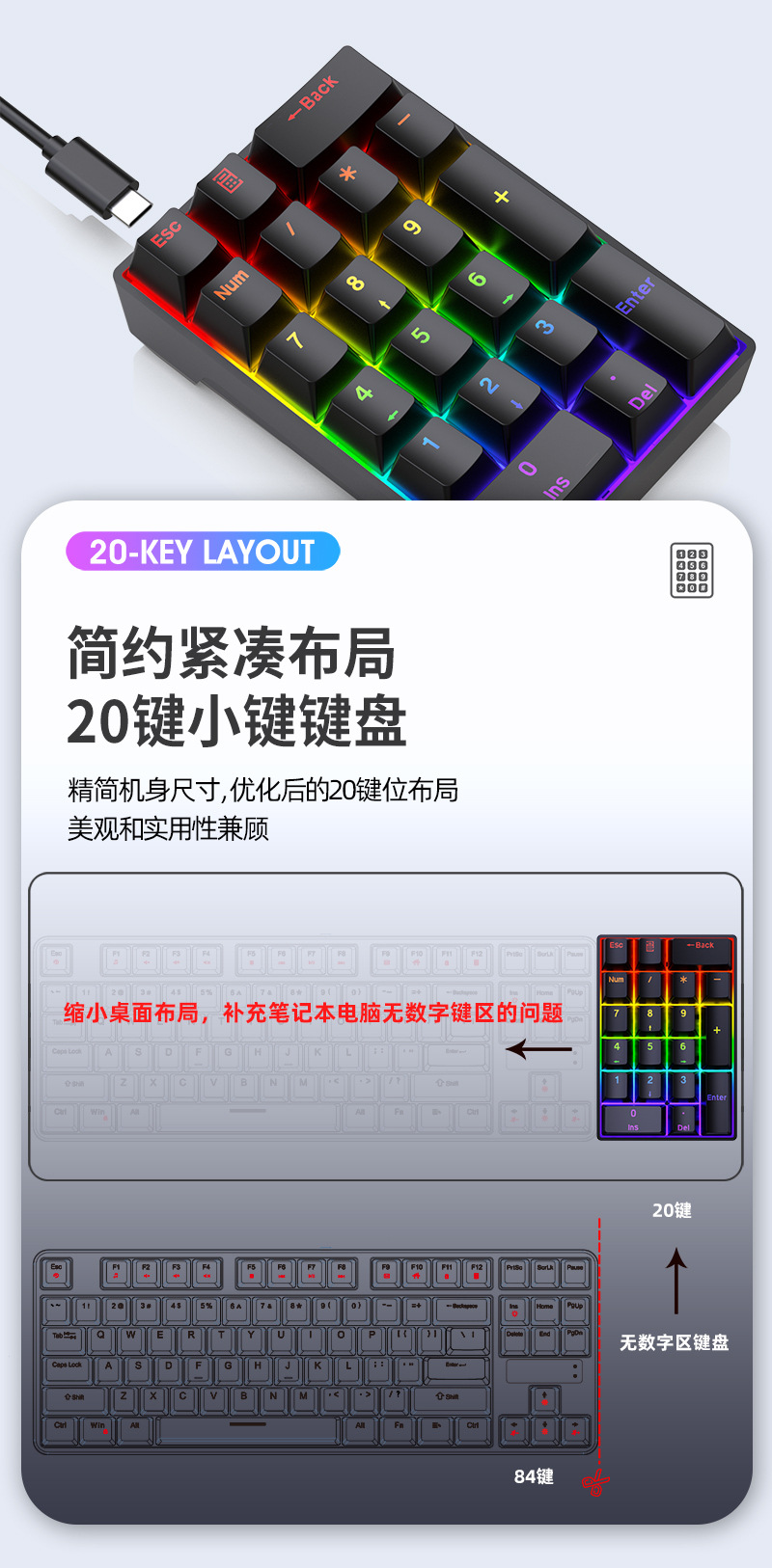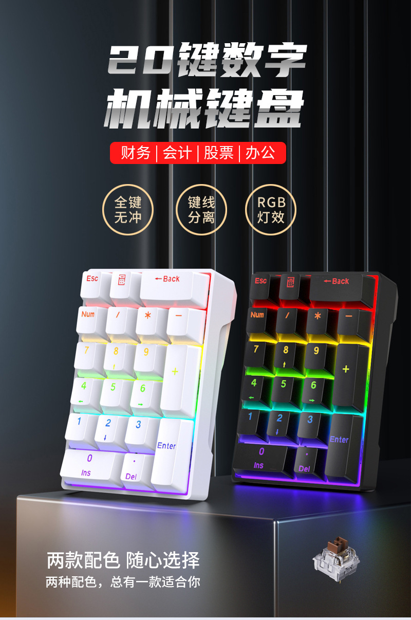 국경 간 재고 YF20 기계식 숫자 키패드 20키 유선 노트북 외부 키보드 사무용 휴대용스토어 가기
