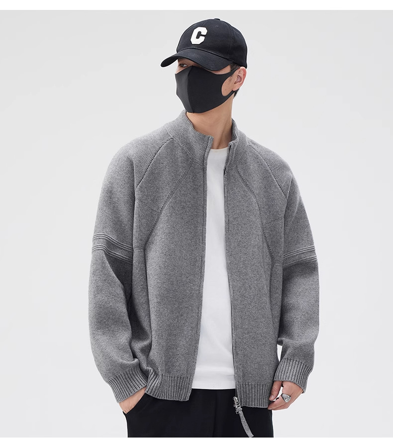 니트 카디건 스웨터 남자 가을과 겨울 2024 새로운 유행 잘 생긴 솔리드 컬러 올 매치 캐주얼 루즈 남성용 재킷스토어 가기