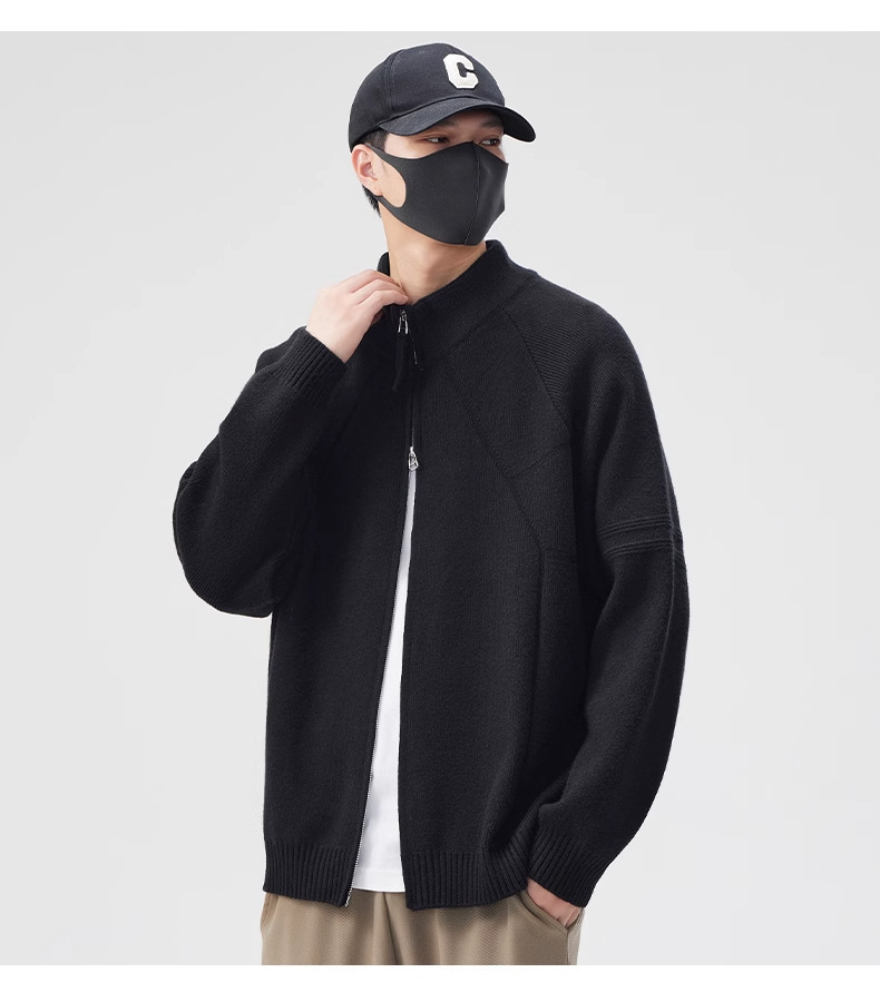 니트 카디건 스웨터 남자 가을과 겨울 2024 새로운 유행 잘 생긴 솔리드 컬러 올 매치 캐주얼 루즈 남성용 재킷