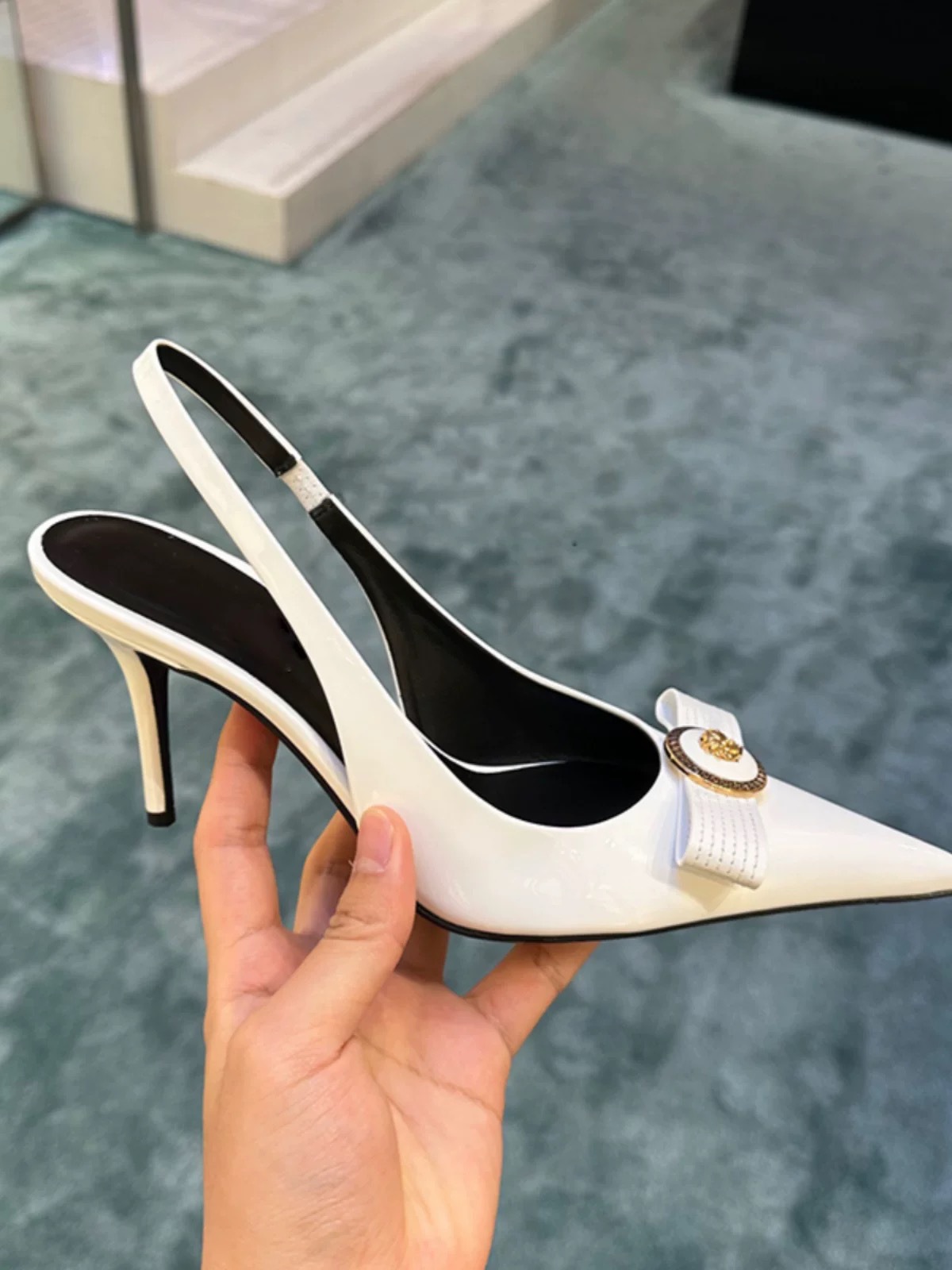 가을 2024 새로운 하이힐 스틸레토 힐을 가리키는 프랑스 우아한 활 얕은 입 신발 여성의 여름 국경스토어 가기
