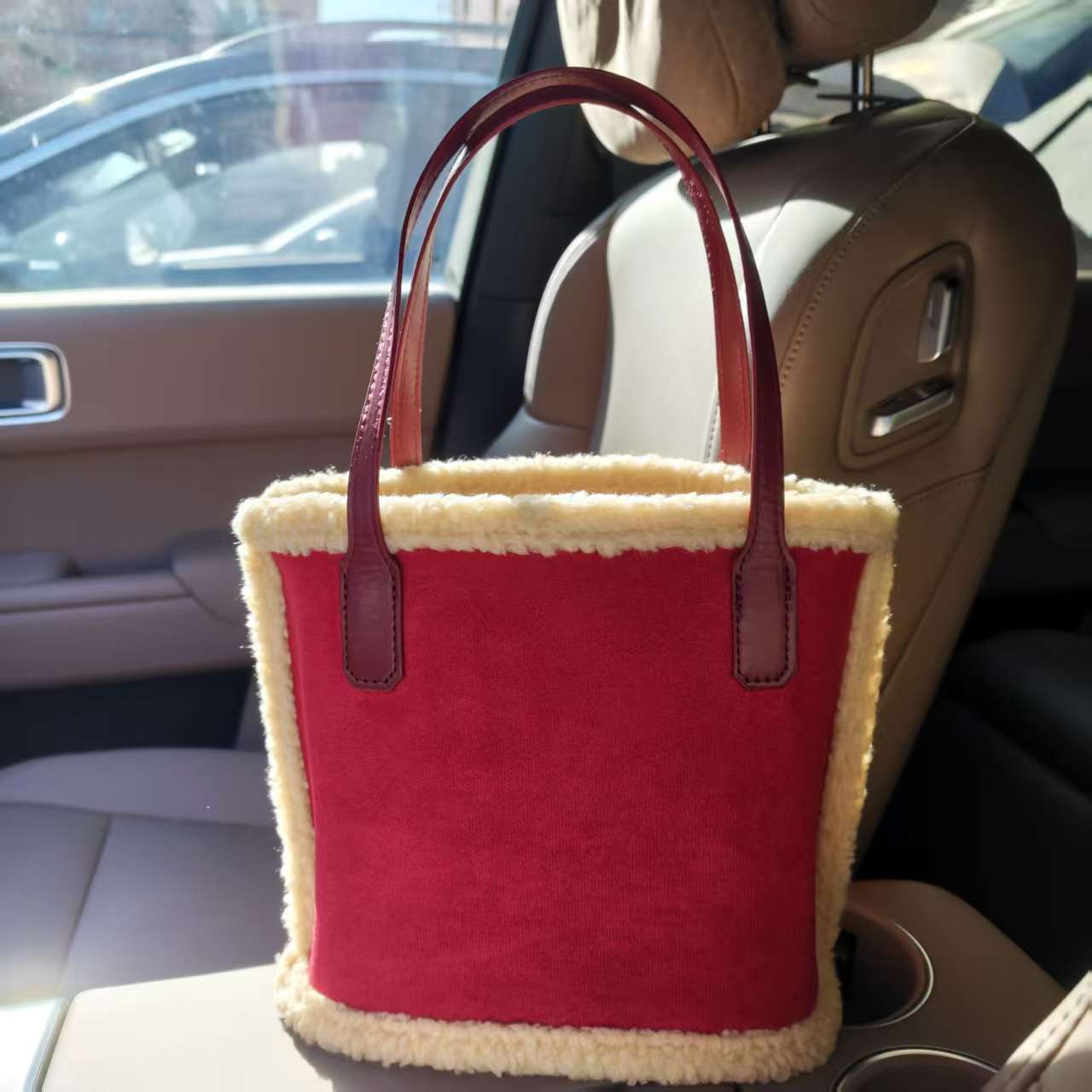 가을과 겨울 새로운 봉제 가방 대용량 여성용 가방 스웨이드 프로스트 핸드백 양모 토트 백 버킷 백스토어 가기