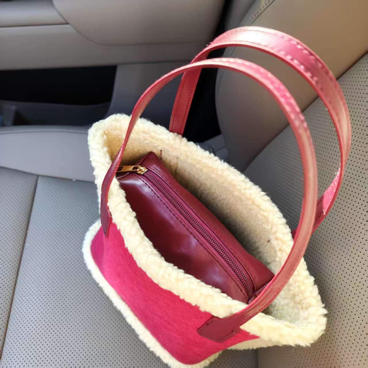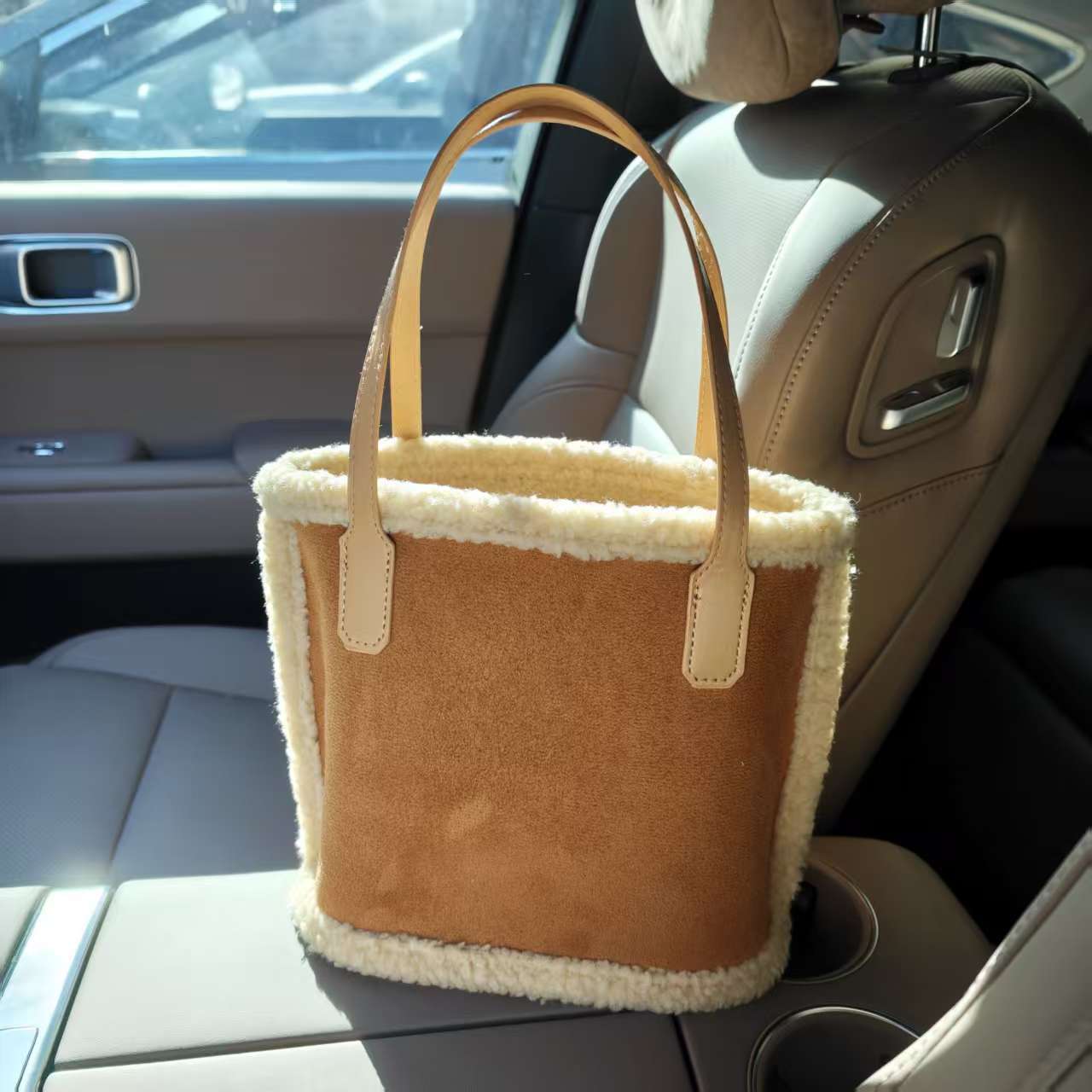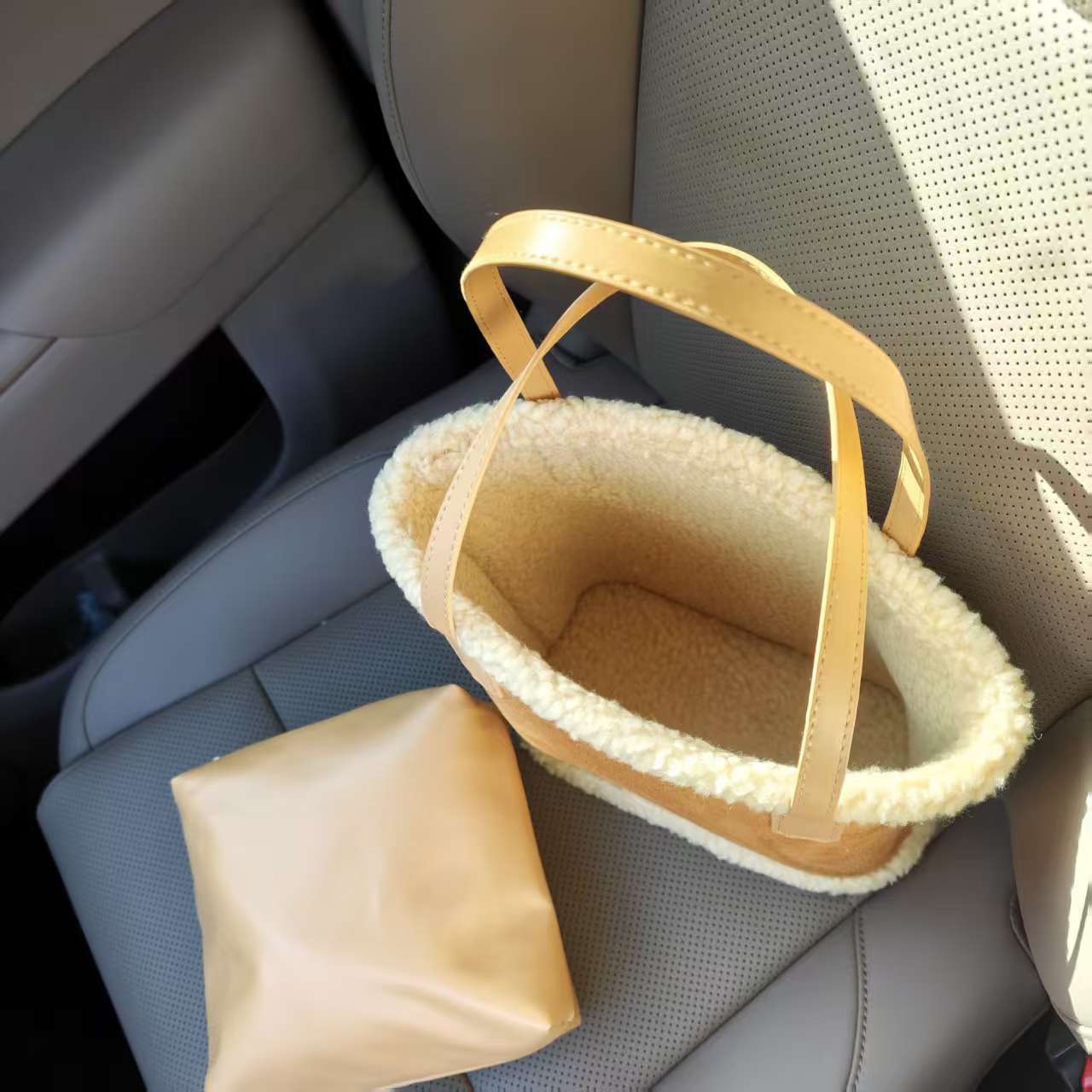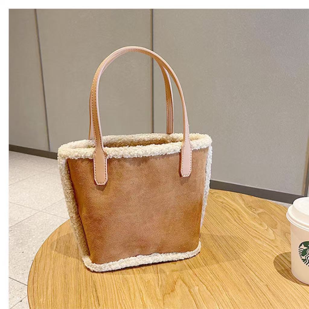 가을과 겨울 새로운 봉제 가방 대용량 여성용 가방 스웨이드 프로스트 핸드백 양모 토트 백 버킷 백