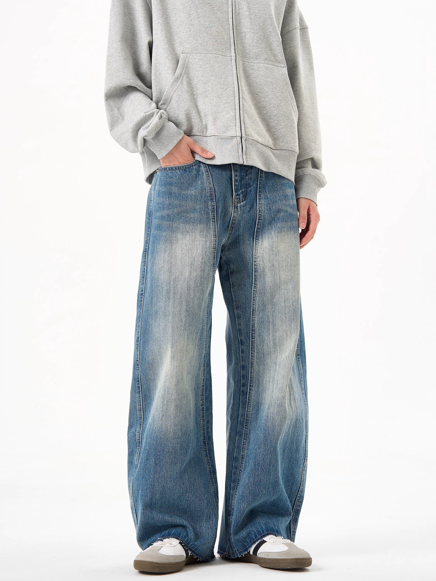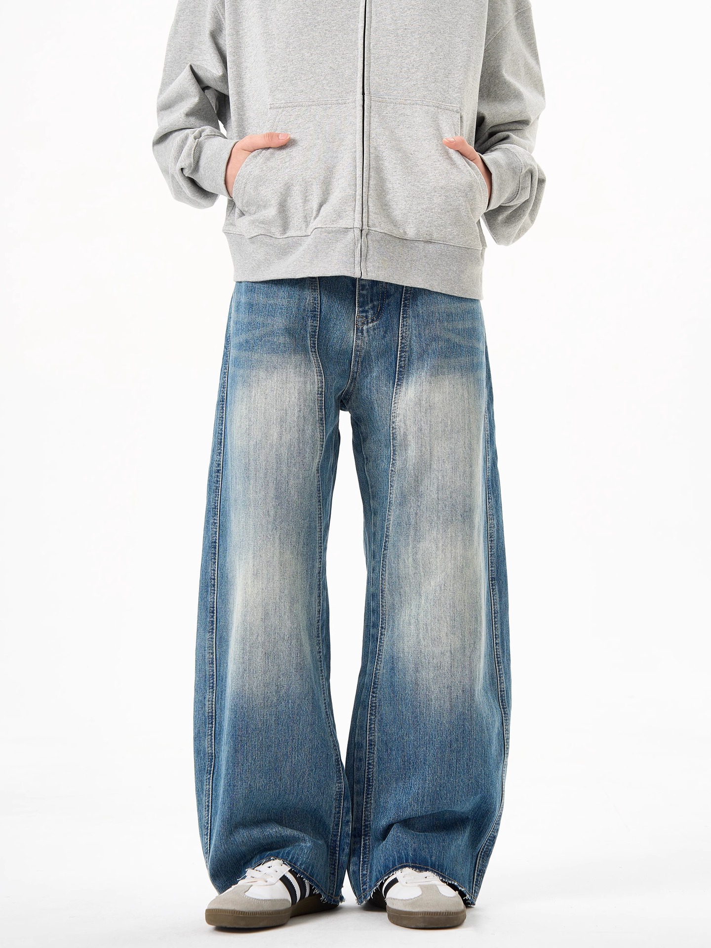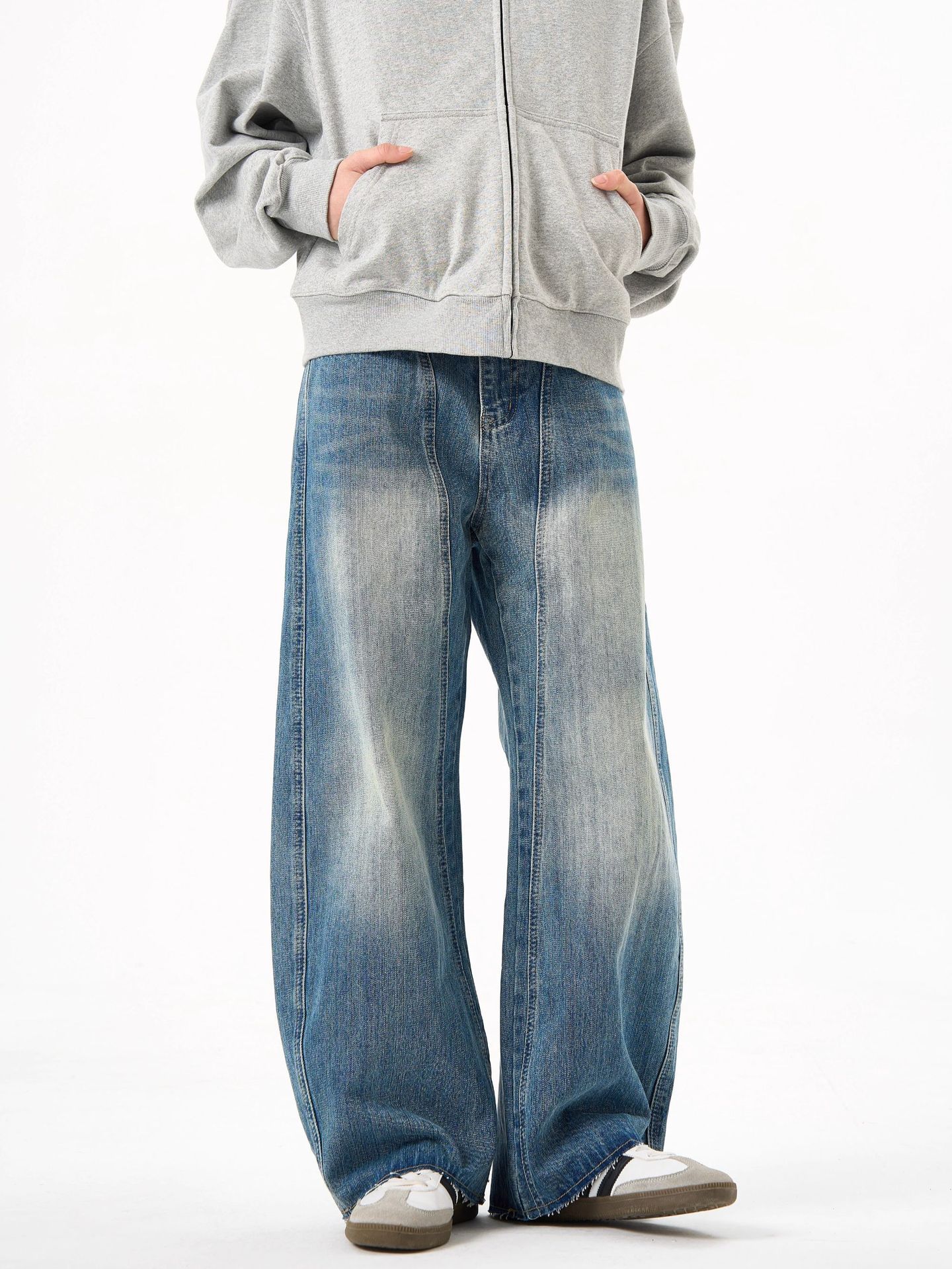 아메리칸 스타일 하이 스트리트 워시 시미 타르 청바지 남성 봄과 가을 새로운 레트로 틈새 디자인 센스 느슨한 넓은 다리 캐주얼 바지
