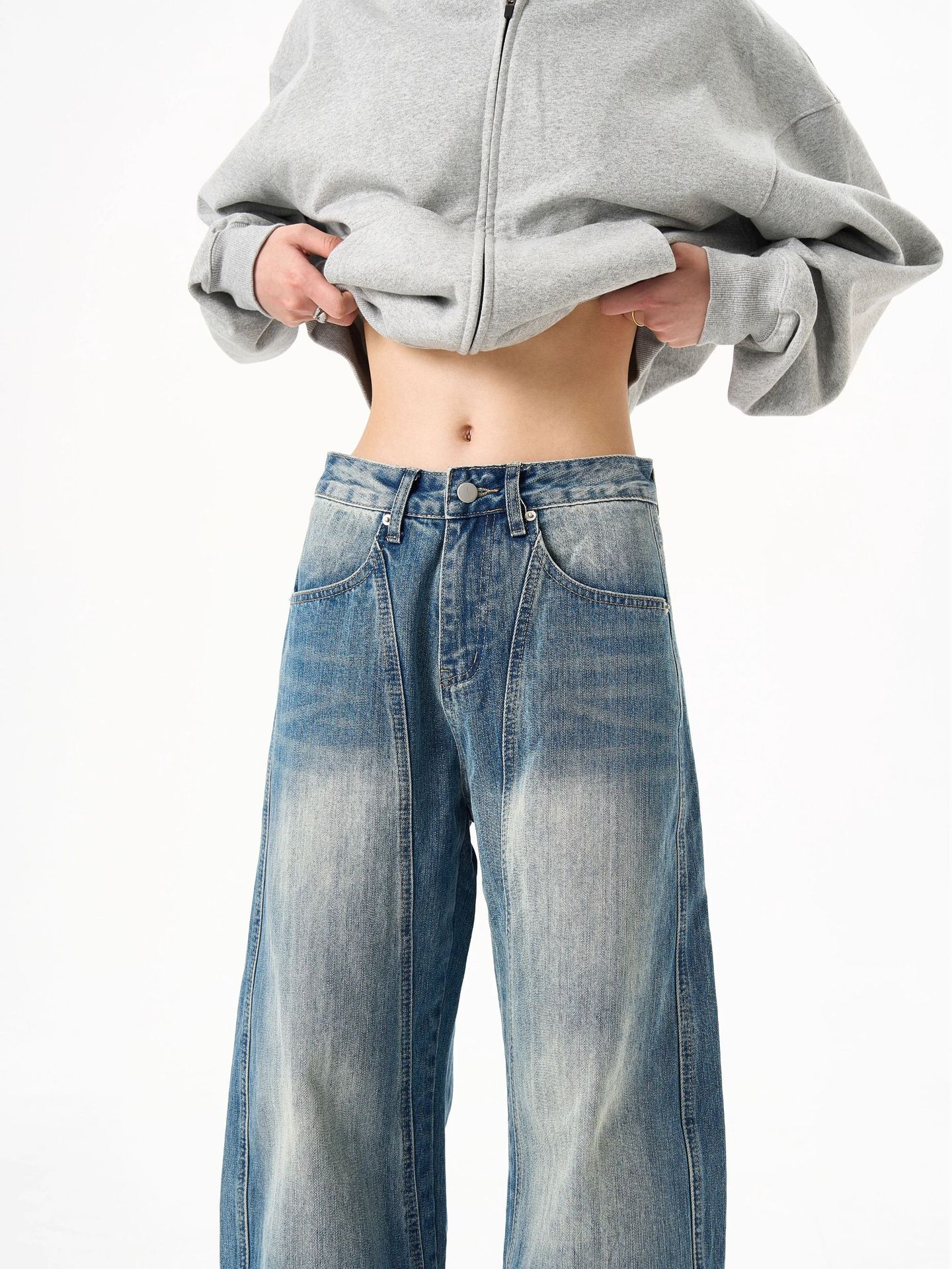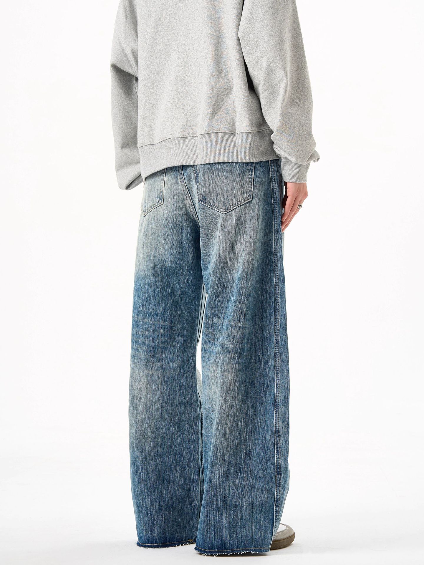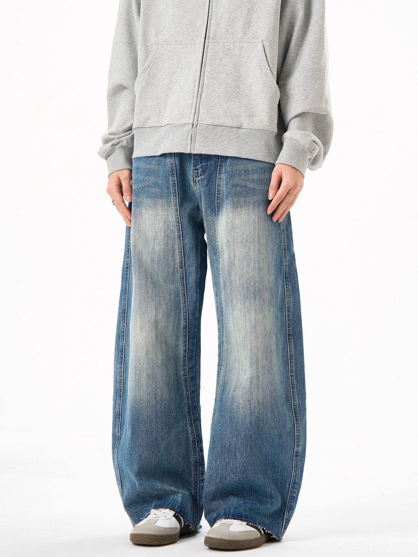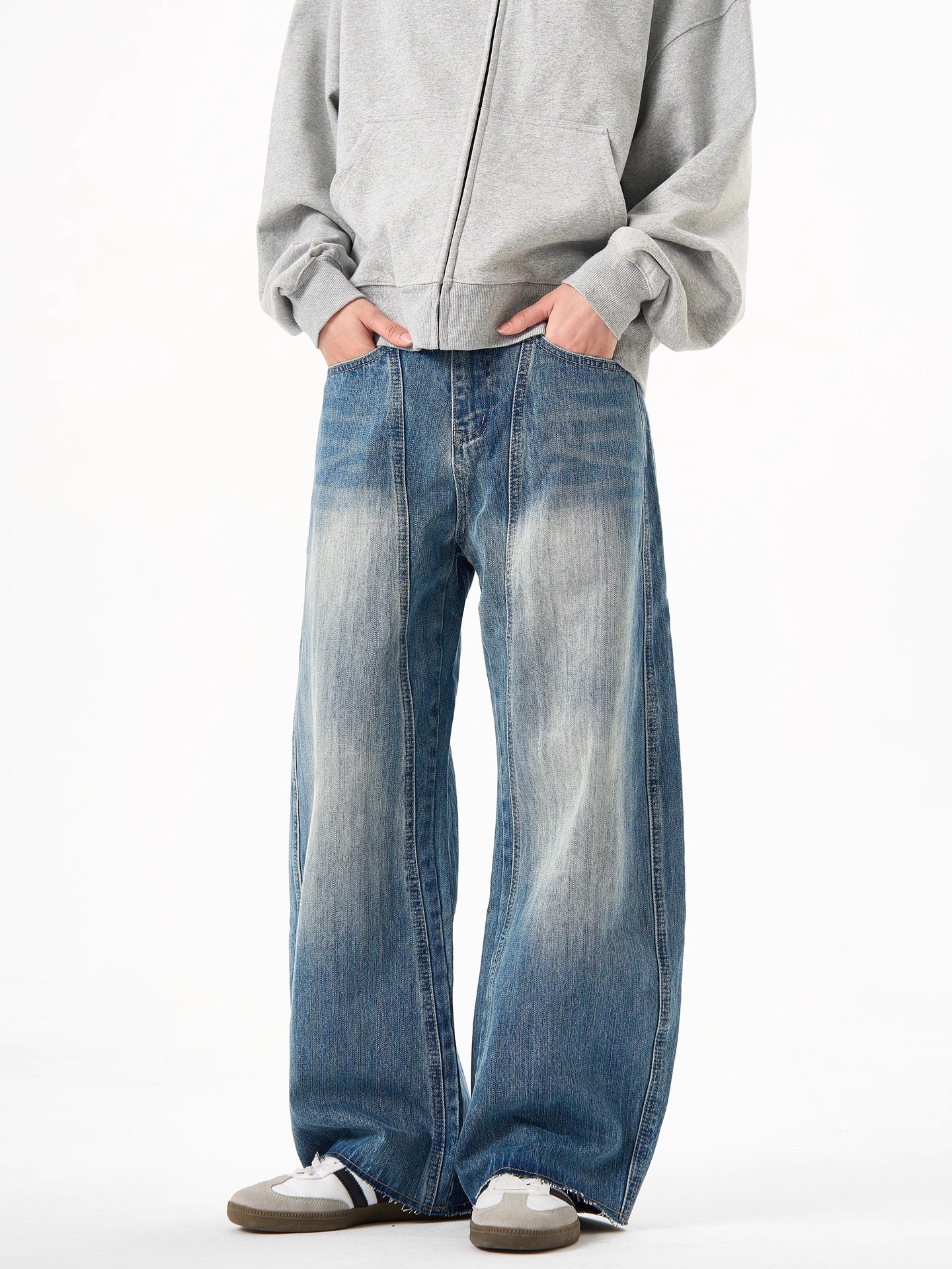 아메리칸 스타일 하이 스트리트 워시 시미 타르 청바지 남성 봄과 가을 새로운 레트로 틈새 디자인 센스 느슨한 넓은 다리 캐주얼 바지
