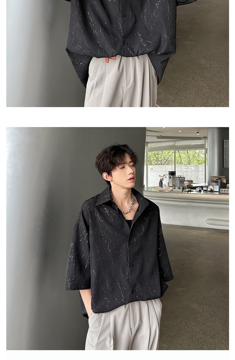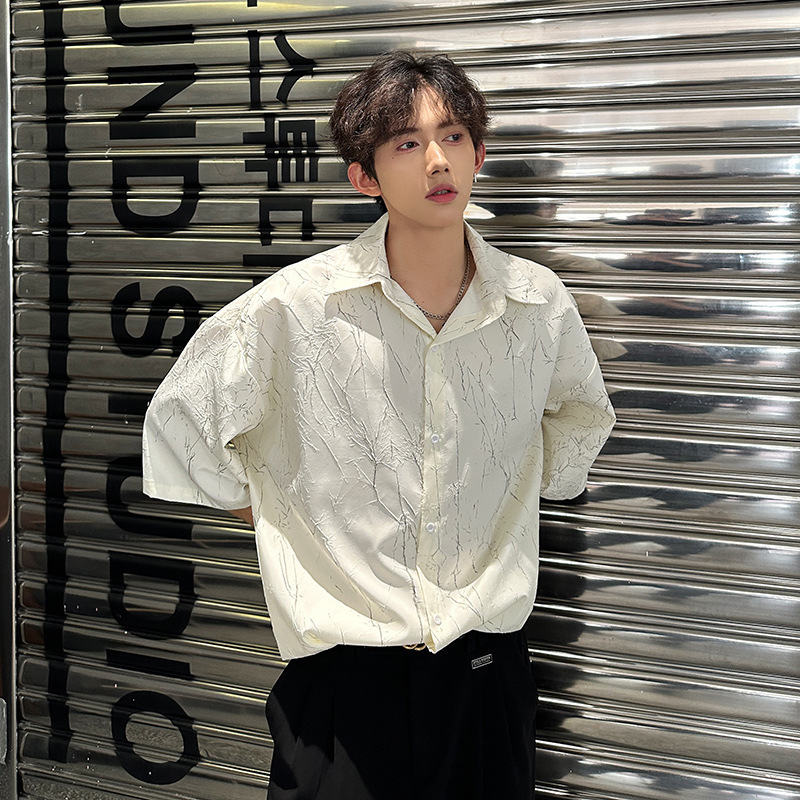 영국 유피 남성 질감 반팔 셔츠 남성 디자인 고급 틈새 셔츠 남자의 여름 새로운 탑