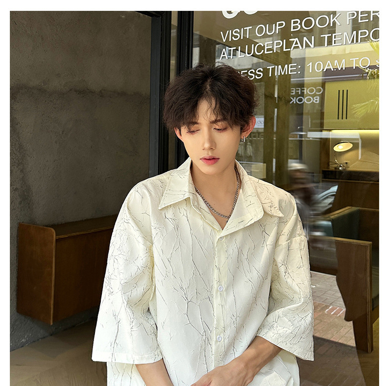 영국 유피 남성 질감 반팔 셔츠 남성 디자인 고급 틈새 셔츠 남자의 여름 새로운 탑스토어 가기