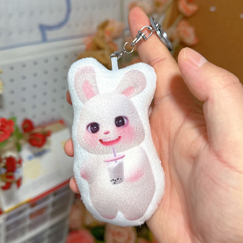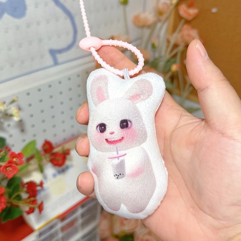 He Qiu Rabbit 음성 펜던트 프레스 음성 인형 키 체인 표현 가방 특수 효과 봉제 주변과 함께 Tone스토어 가기
