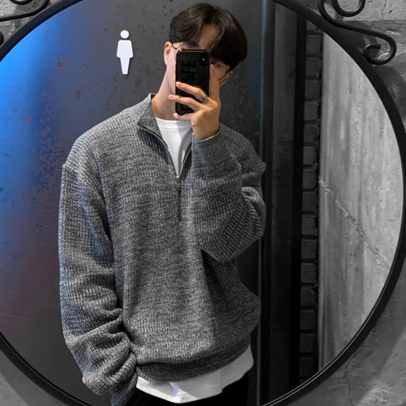 가을과 겨울 새로운 반 지퍼 스웨터 남자 더피 잘 생긴 유행 핸섬 내부 수직 칼라 스웨터 하프 하이 칼라 스웨터스토어 가기