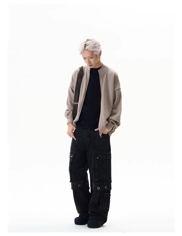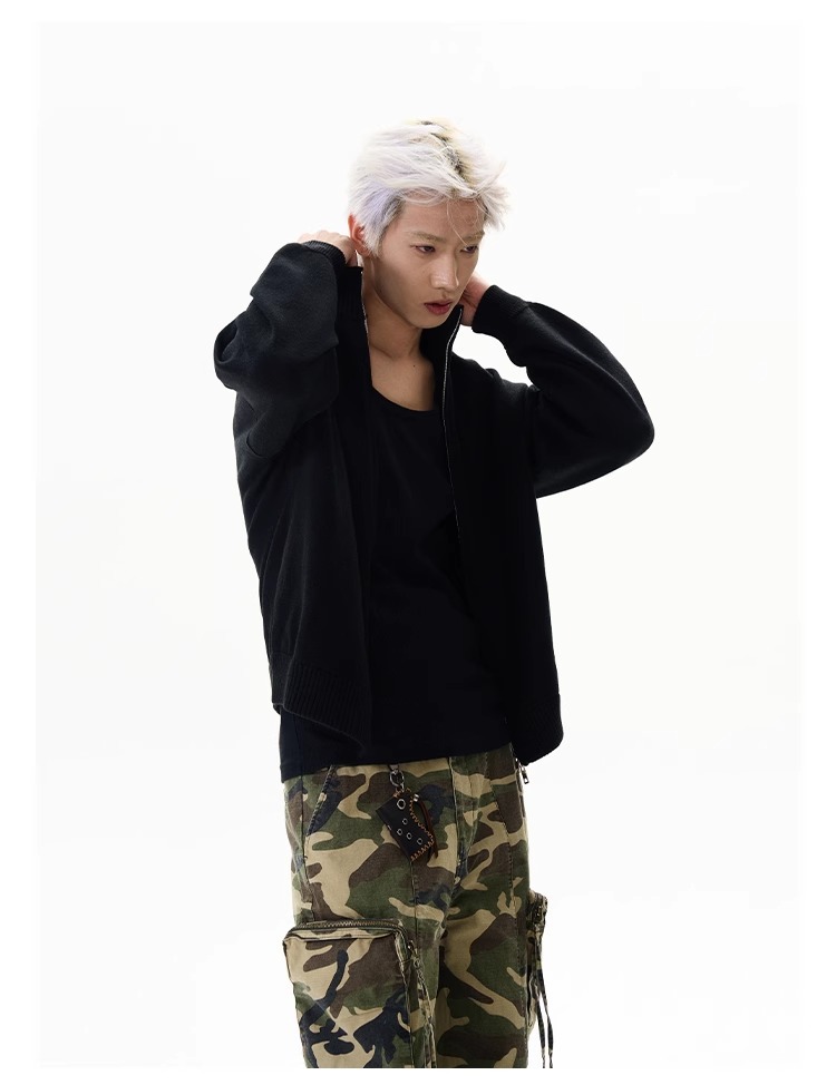아메리칸 스타일 레트로 게으른 스타일 짧은 니트 카디건 스웨터 남자 하이 스트리트 클렌핏 칼라 재킷 유행 탑스토어 가기