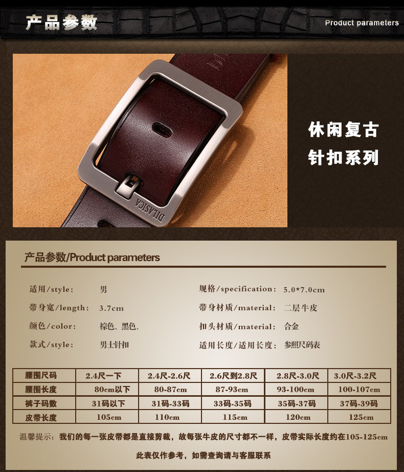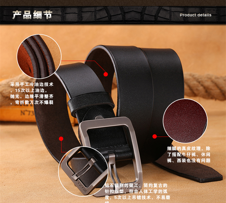 벨트 남성용 핀 버클 순수 소가죽 청소년 캐주얼 비즈니스 벨트 중년 및 젊은 한국 스타일 청바지스토어 가기