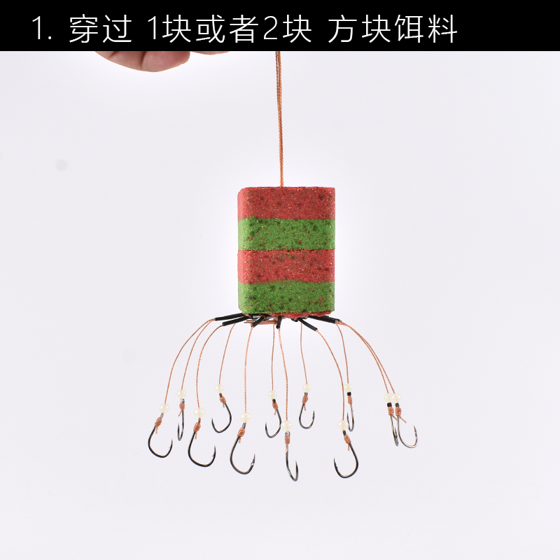 加长子线夹饼翻板鱼钩盘钩海杆抛竿八爪夜光款鲢鳙浮钓配件爆满和