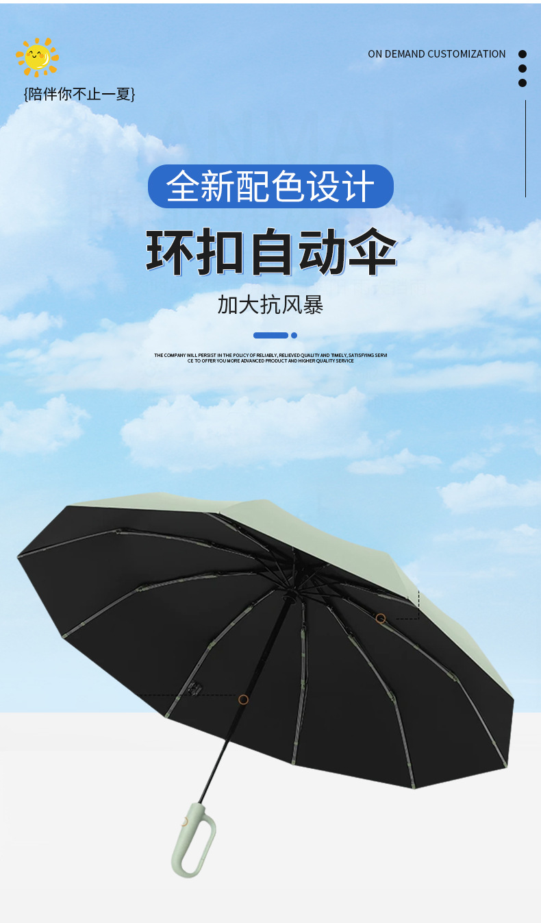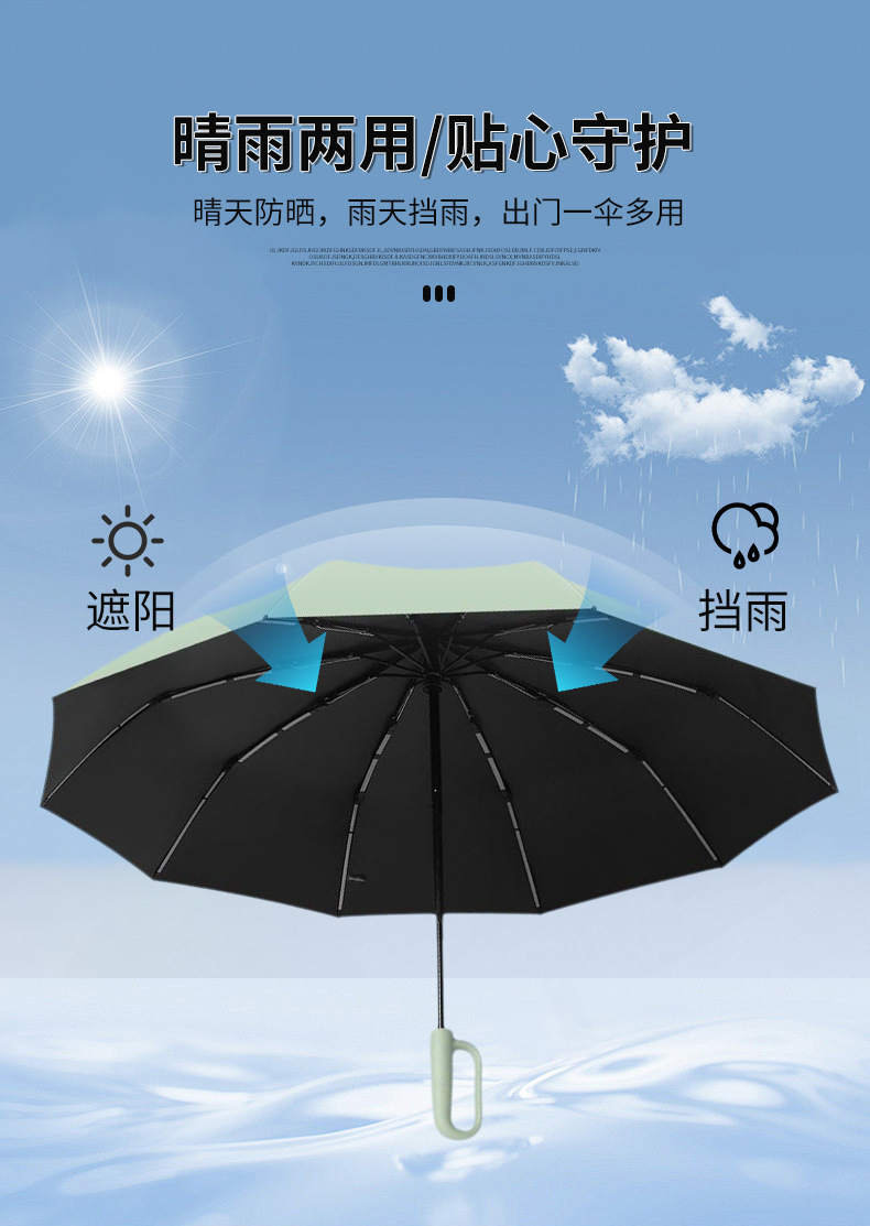 야외 여행 휴대용 분실 버클 우산 완전 자동 강화 접이식 이중 목적 써니 우산 버클 블랙 고무 우산스토어 가기