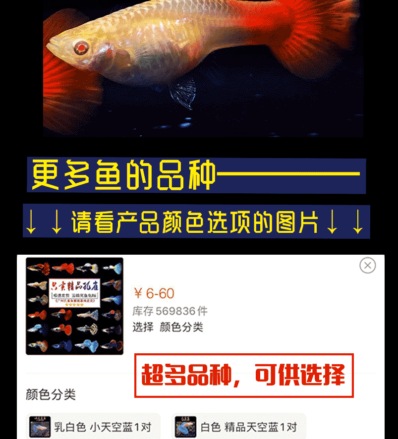 • 공작 물고기 8종 각 1쌍, 수컷 8마리, 임산부 8마리, 2.5-3.5cm