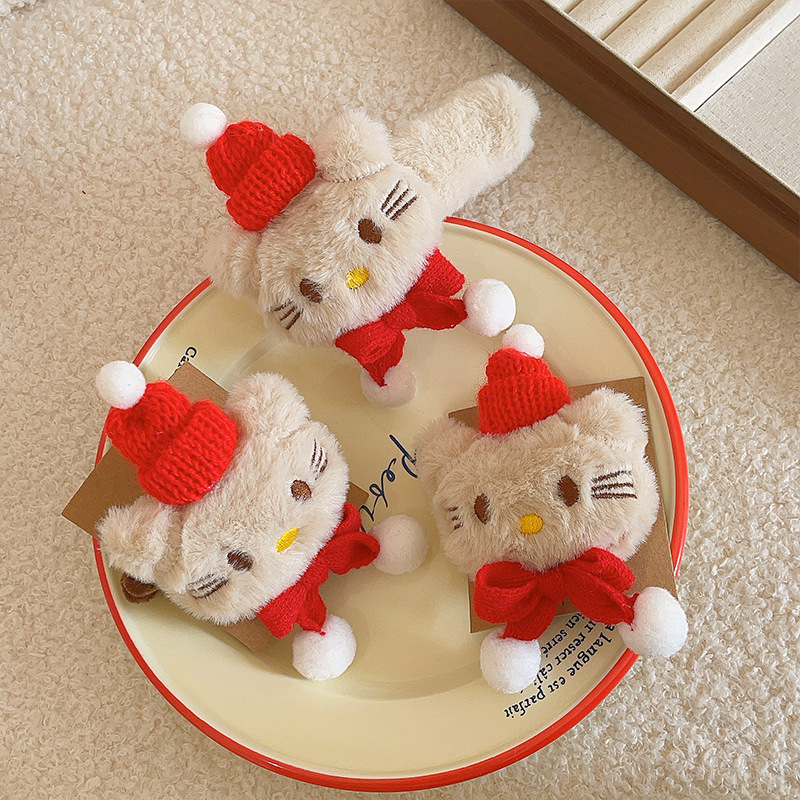 활 kt 고양이 인형 머리핀 가을과 겨울 소녀 귀여운 봉제 오리 지폐 클립 크리스마스 벨벳 헤어 밴드 헤어 액세서리