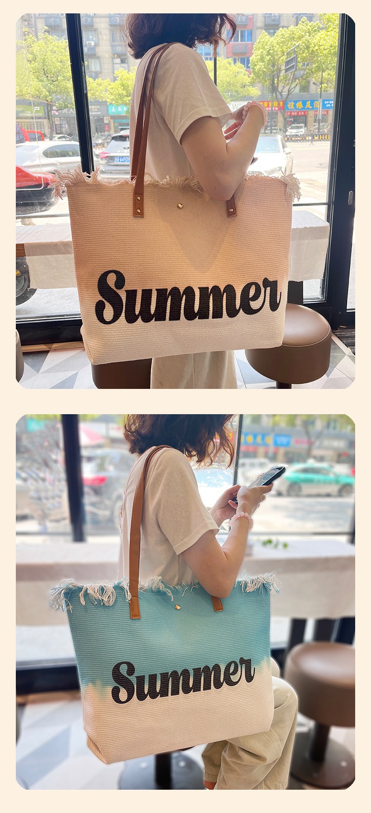2024 새로운 재고 대용량 술 가방 비치 백 여성 어깨 토트 백 대외 무역 국경 간 수동 활동