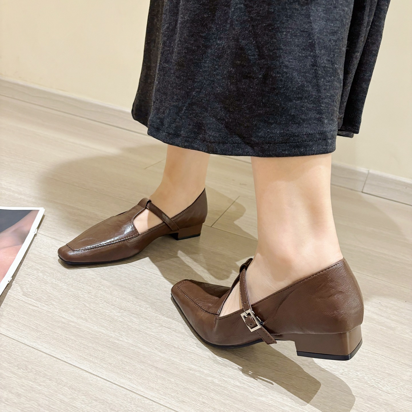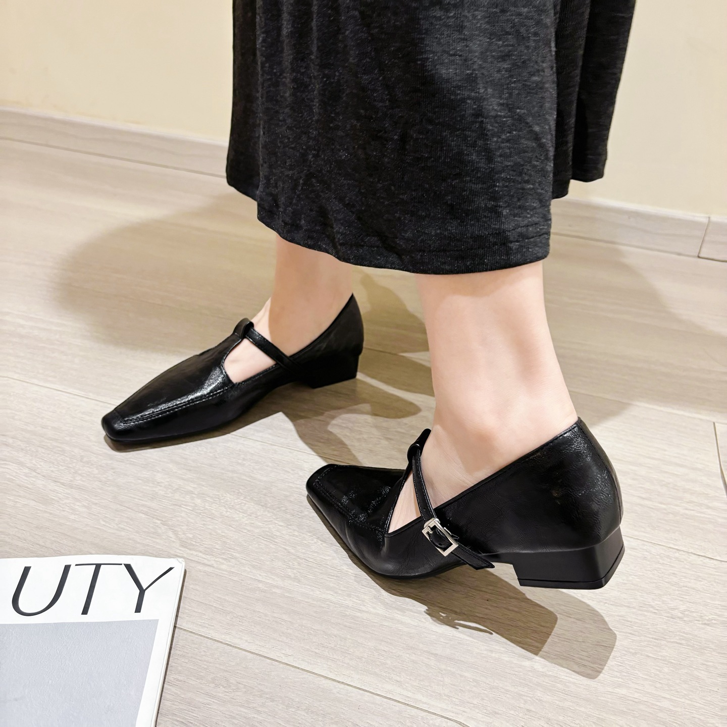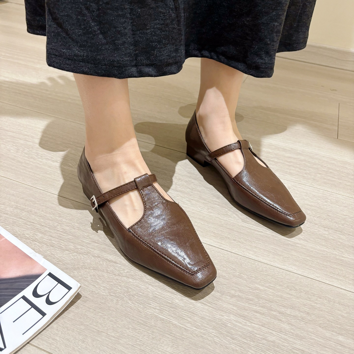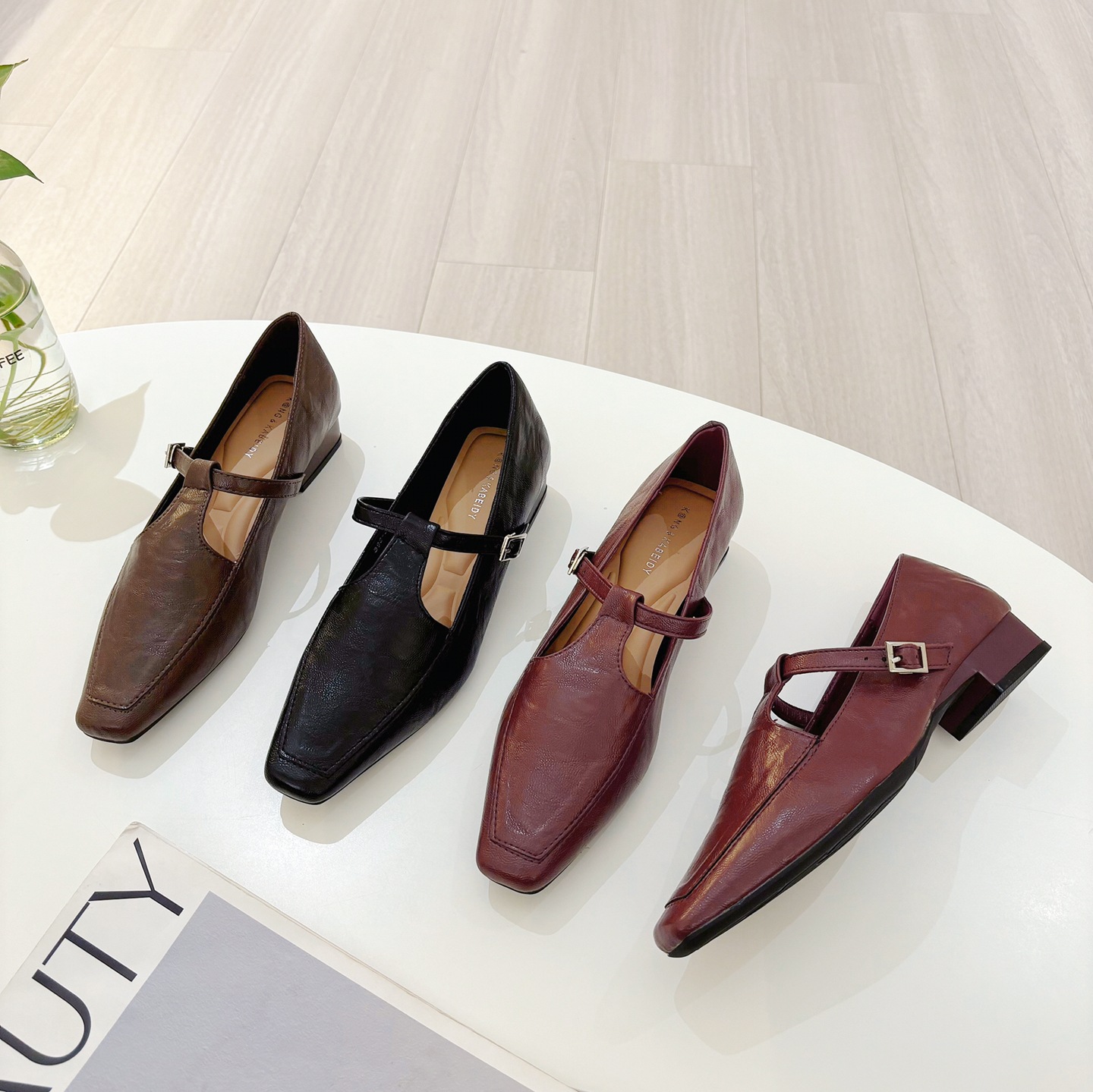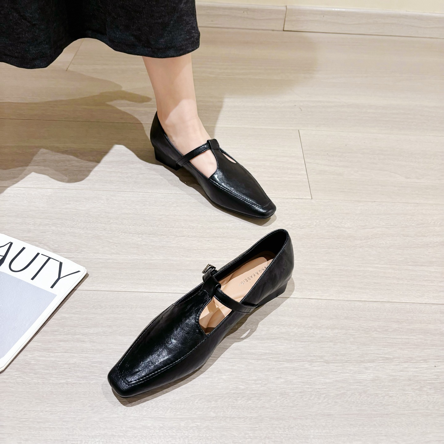 K @ NG 프렌치 레트로 스퀘어 발가락 얕은 입 싱글 신발 여성의 봄과 가을 새로운 한국 올 매치 통근 플랫 메리 제인 신발스토어 가기