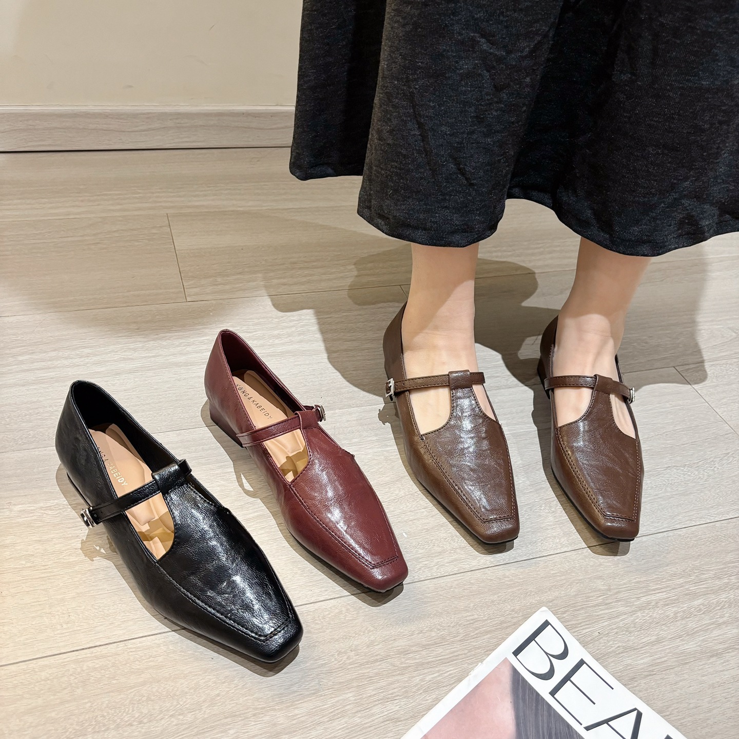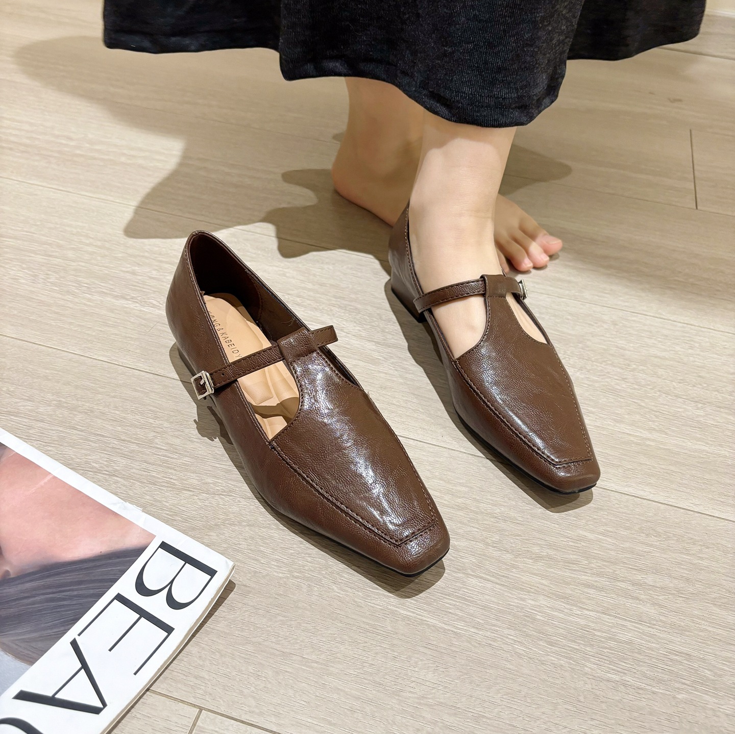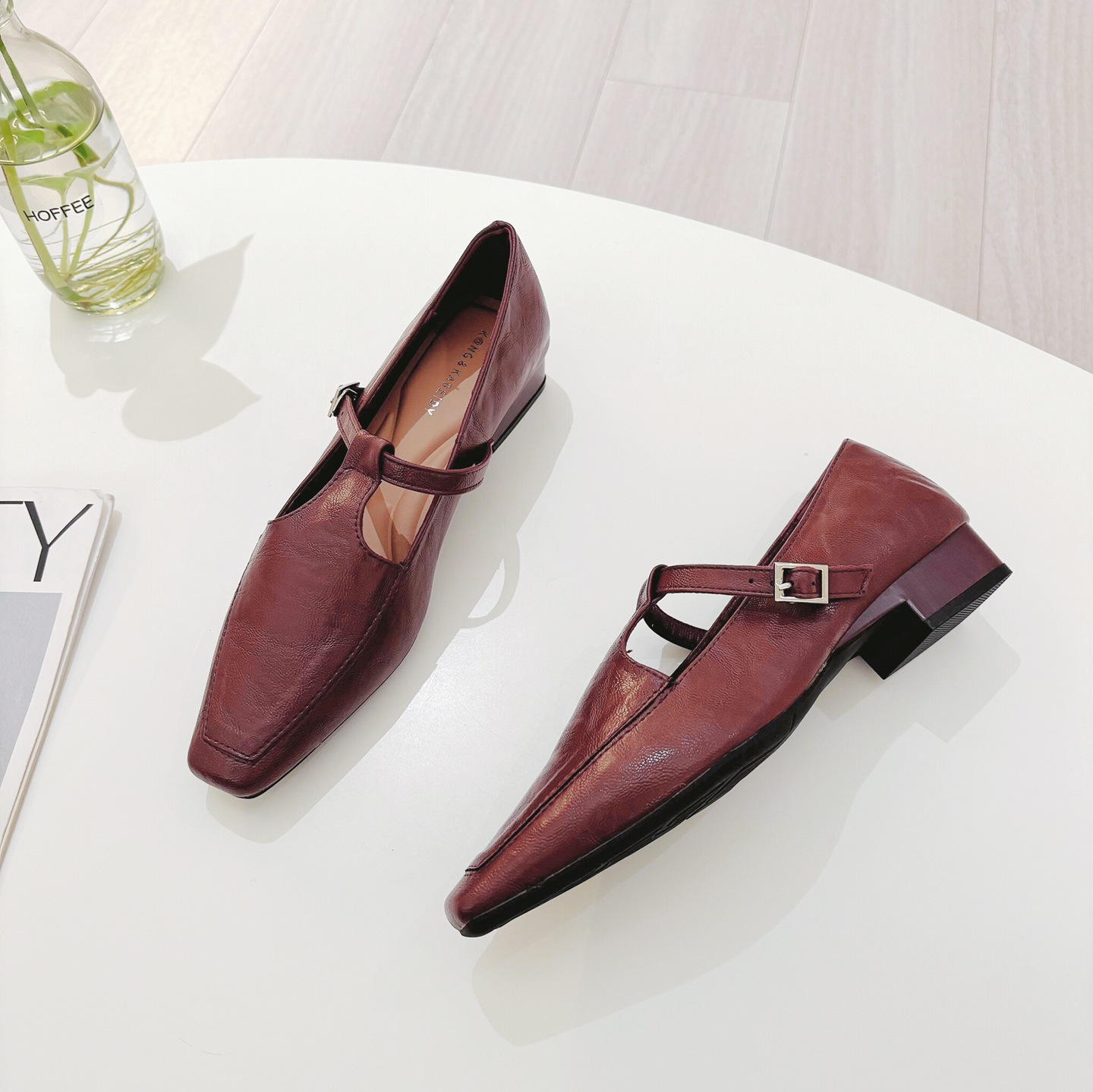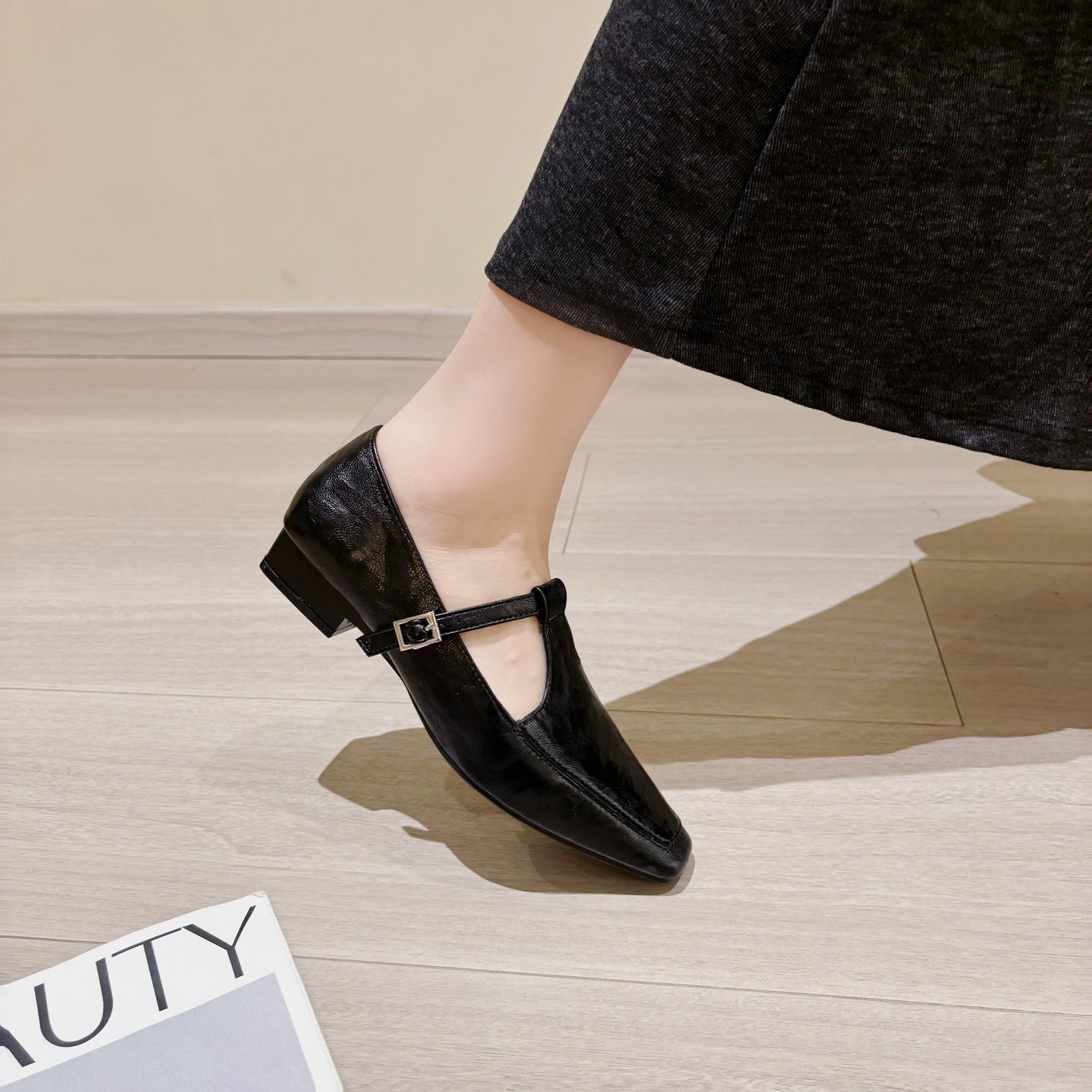 K @ NG 프렌치 레트로 스퀘어 발가락 얕은 입 싱글 신발 여성의 봄과 가을 새로운 한국 올 매치 통근 플랫 메리 제인 신발스토어 가기