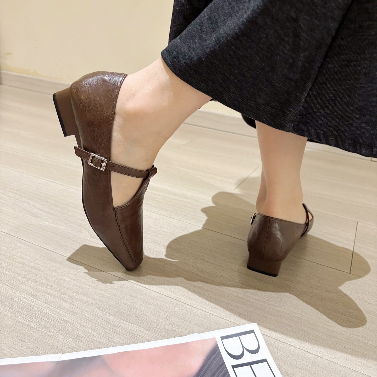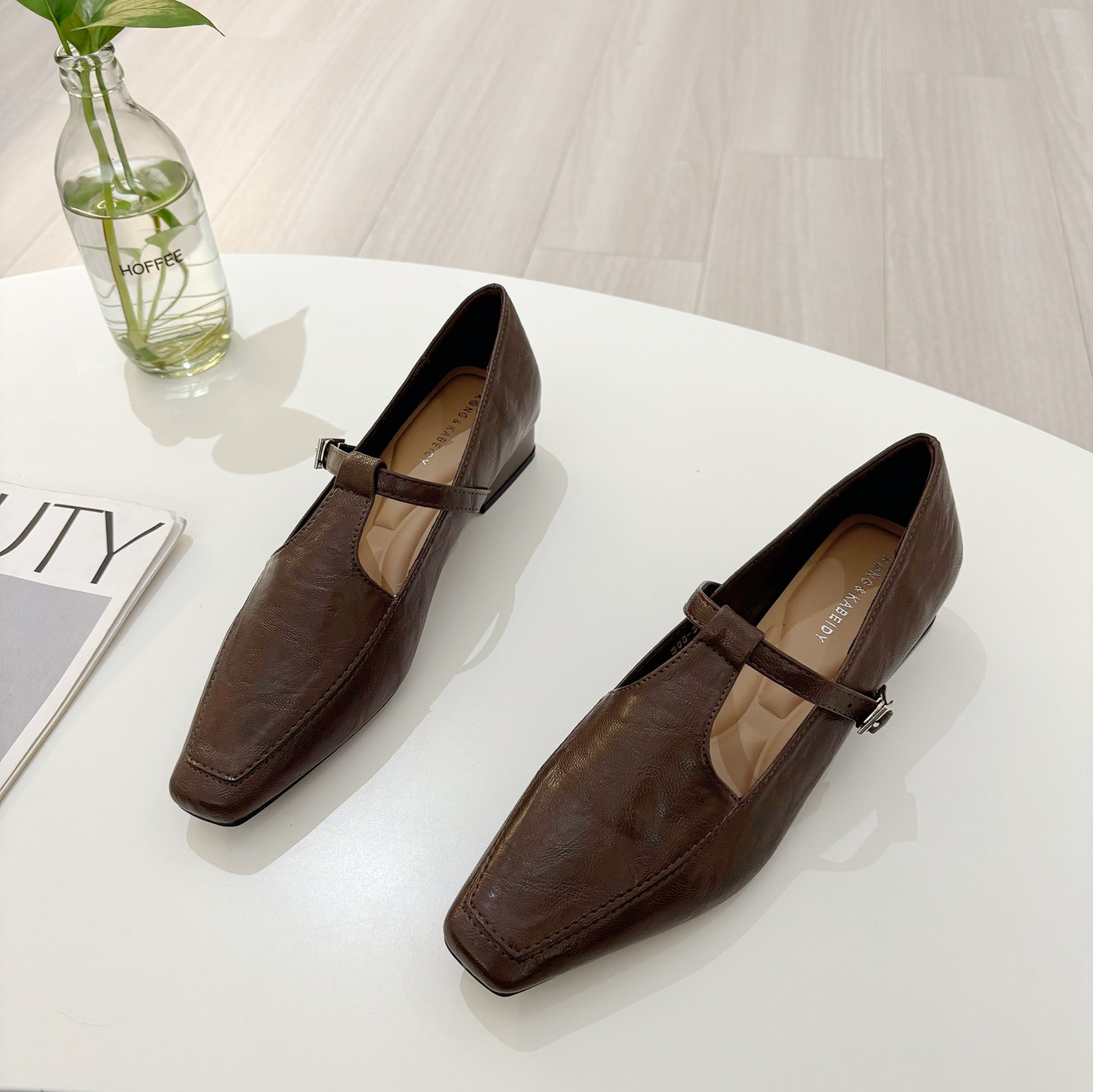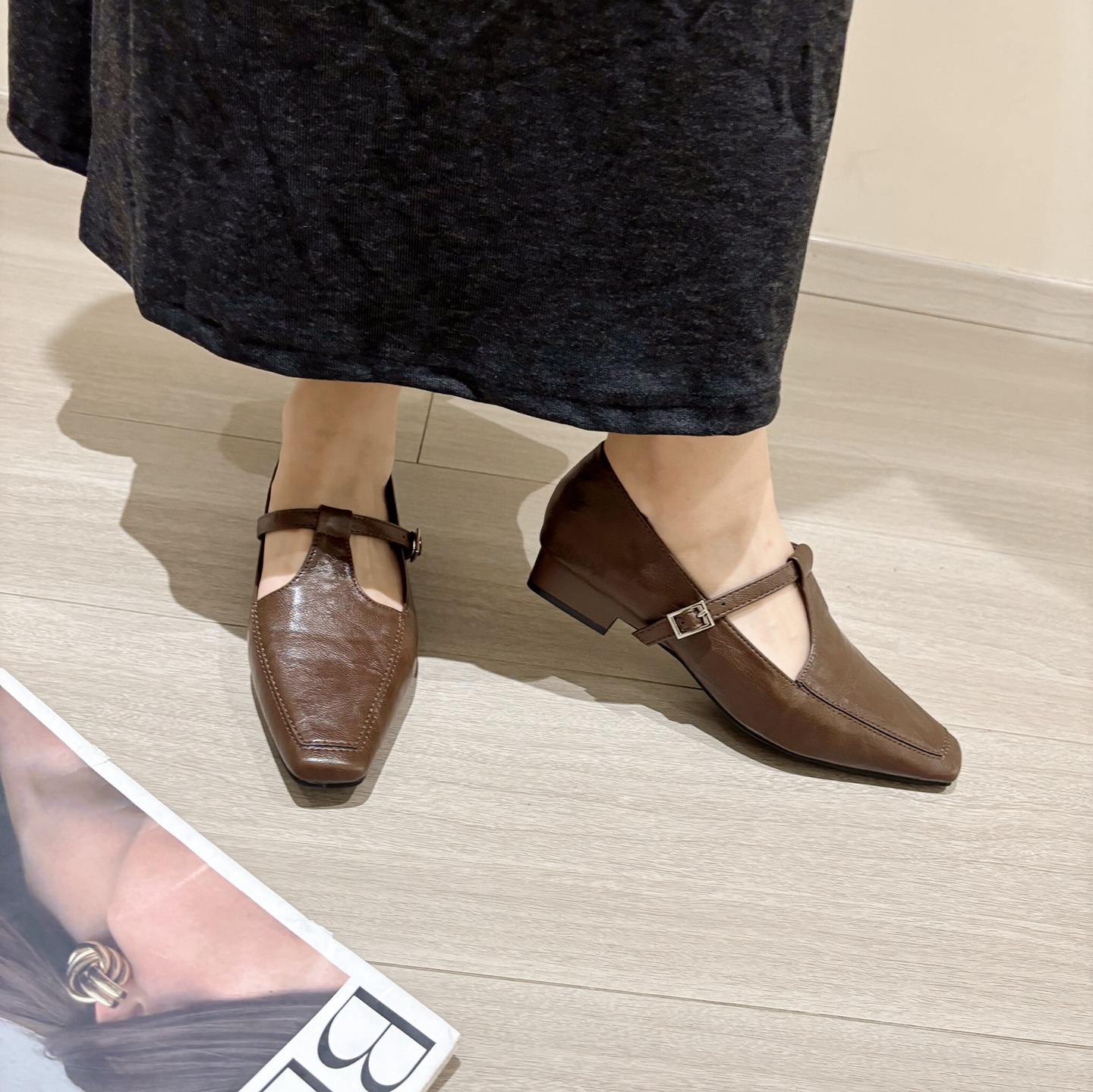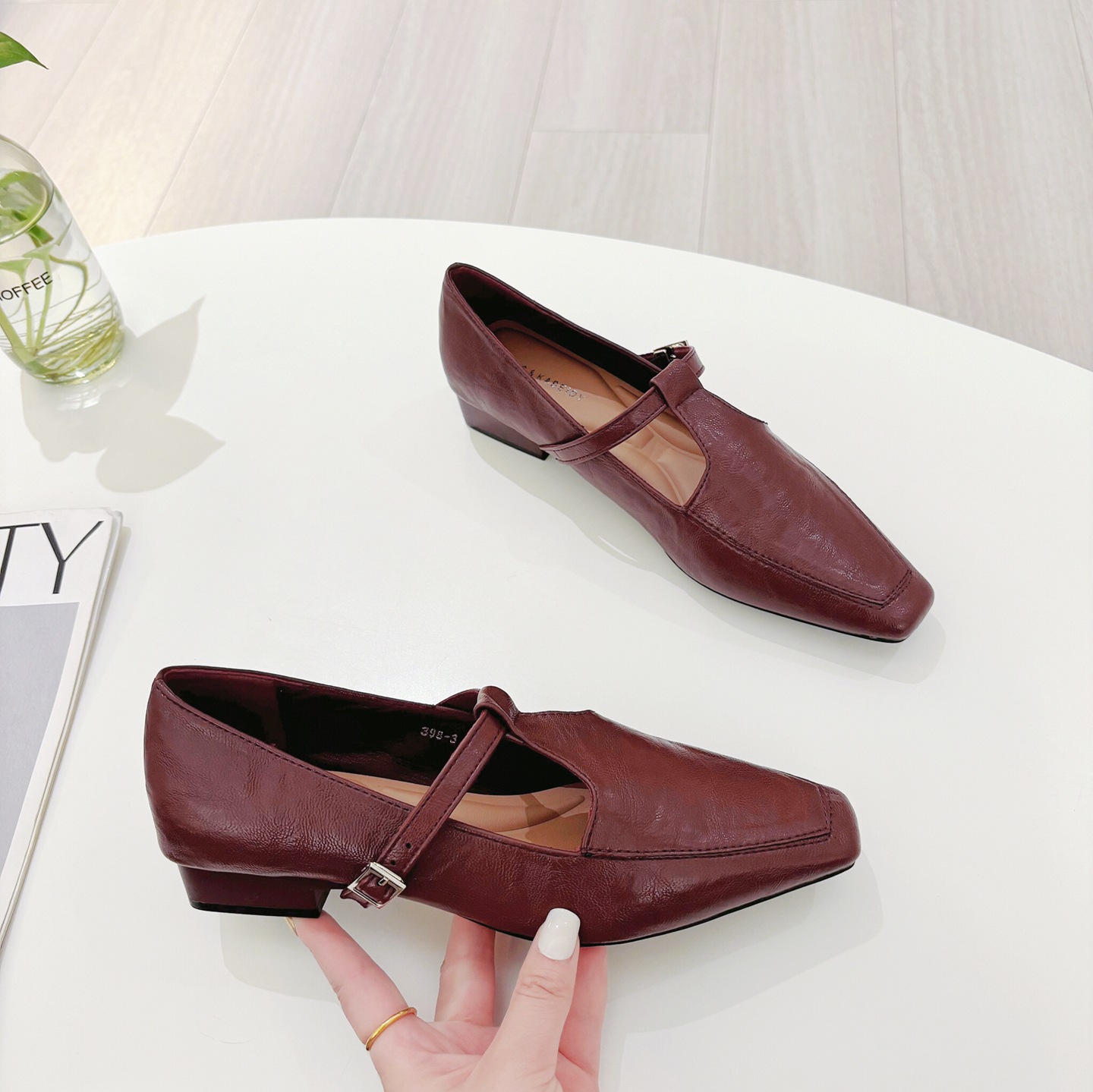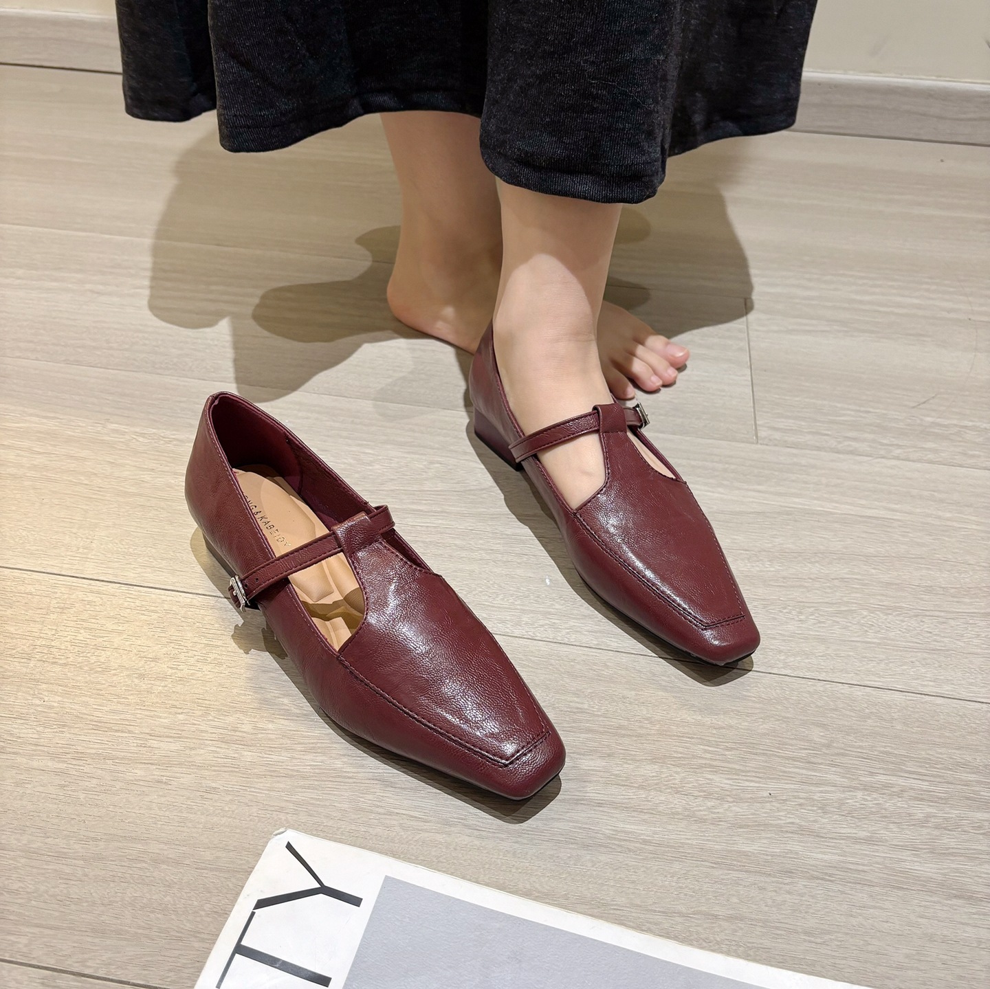 K @ NG 프렌치 레트로 스퀘어 발가락 얕은 입 싱글 신발 여성의 봄과 가을 새로운 한국 올 매치 통근 플랫 메리 제인 신발스토어 가기