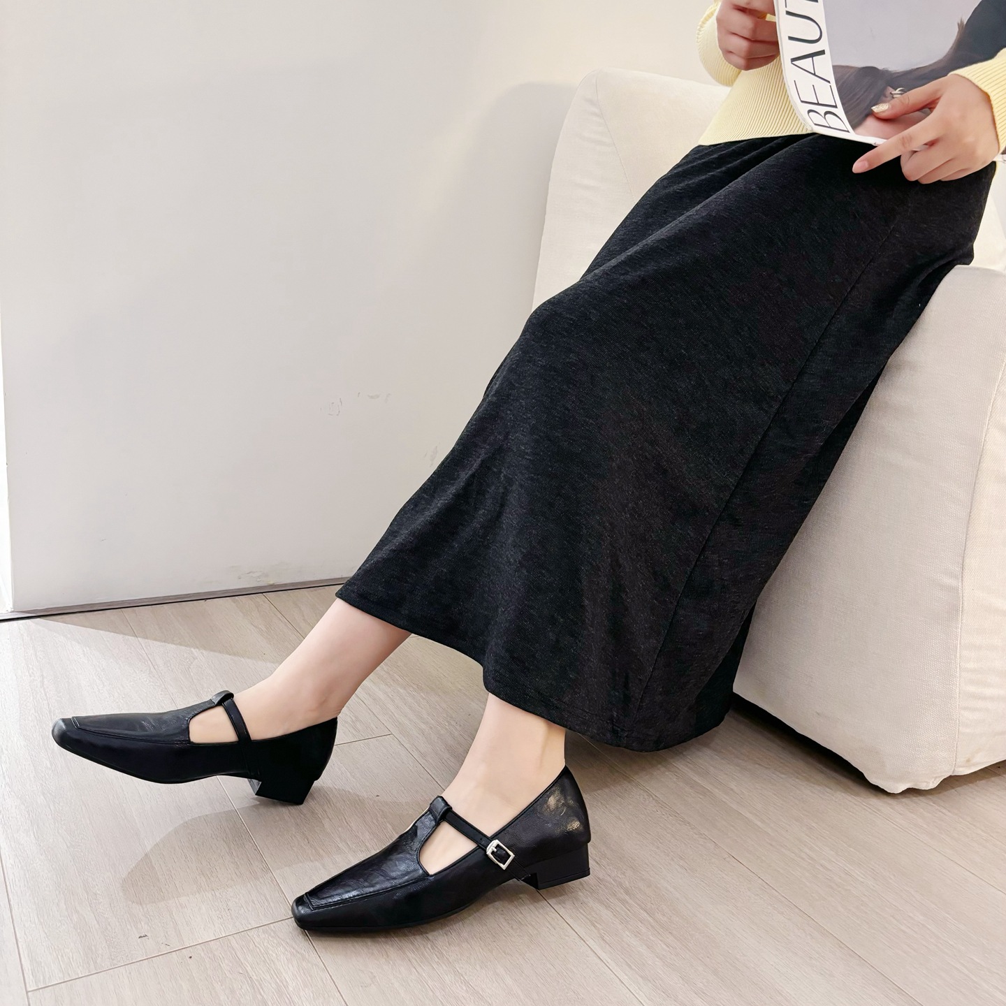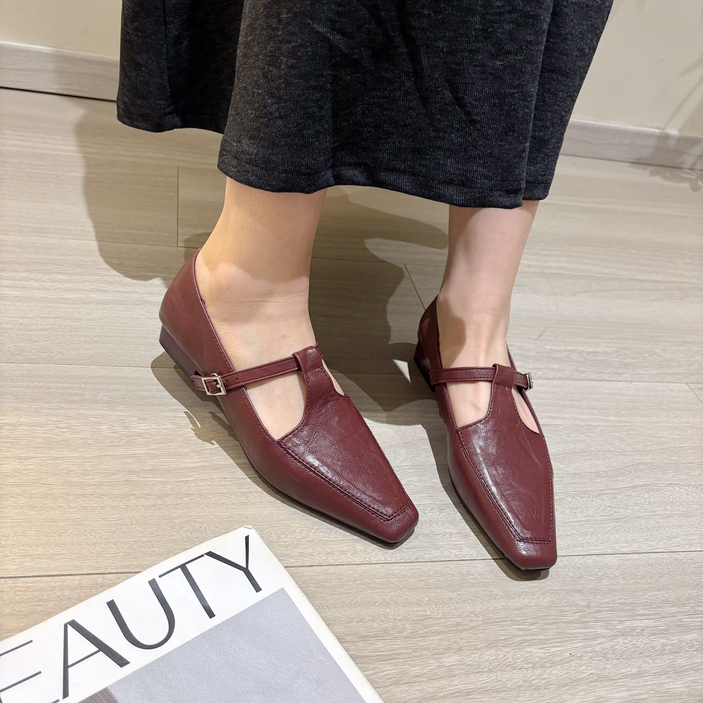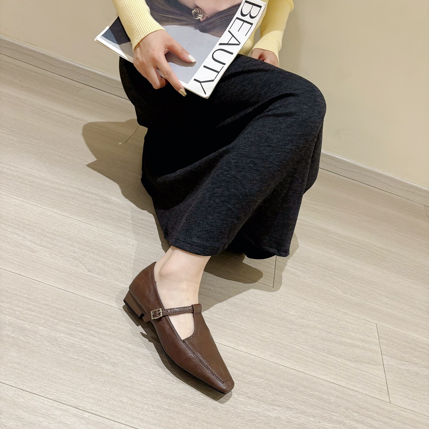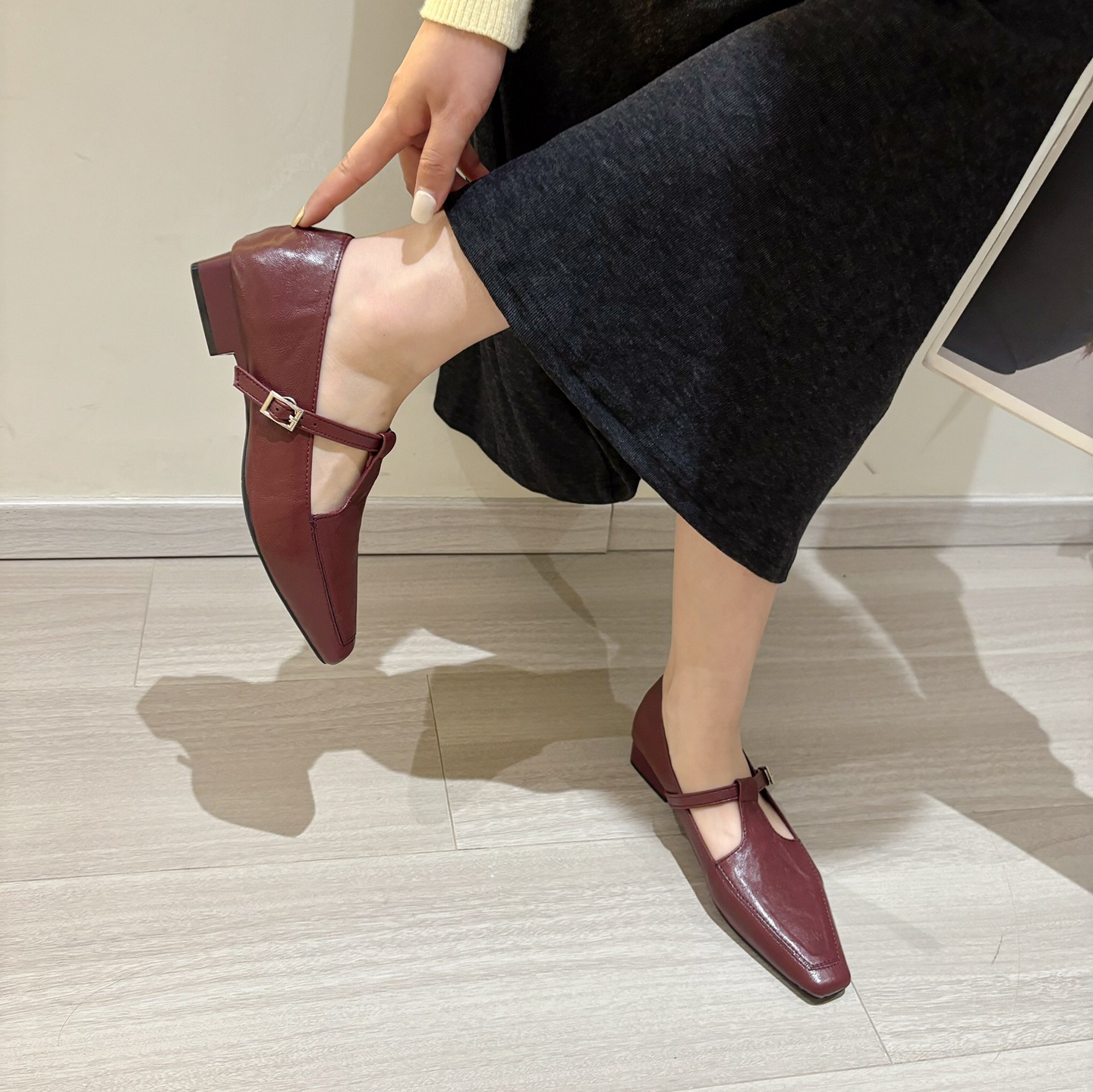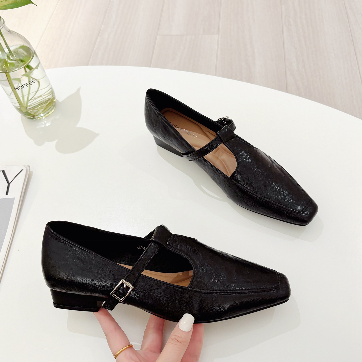 K @ NG 프렌치 레트로 스퀘어 발가락 얕은 입 싱글 신발 여성의 봄과 가을 새로운 한국 올 매치 통근 플랫 메리 제인 신발스토어 가기
