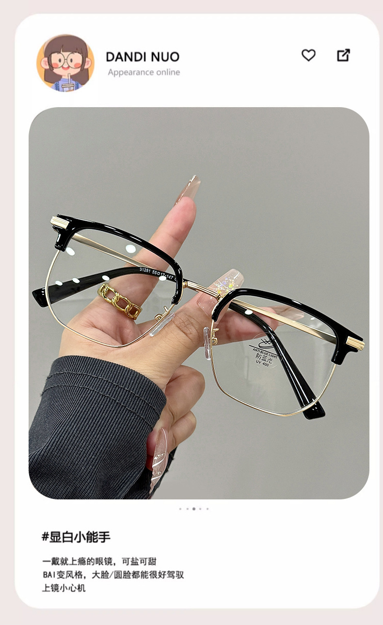 31281 새로운 인터넷 유명인 눈썹 랙 플레인 올 매치 아티스틱 레트로 안경 프레임 안티 블루 라이트 근시스토어 가기
