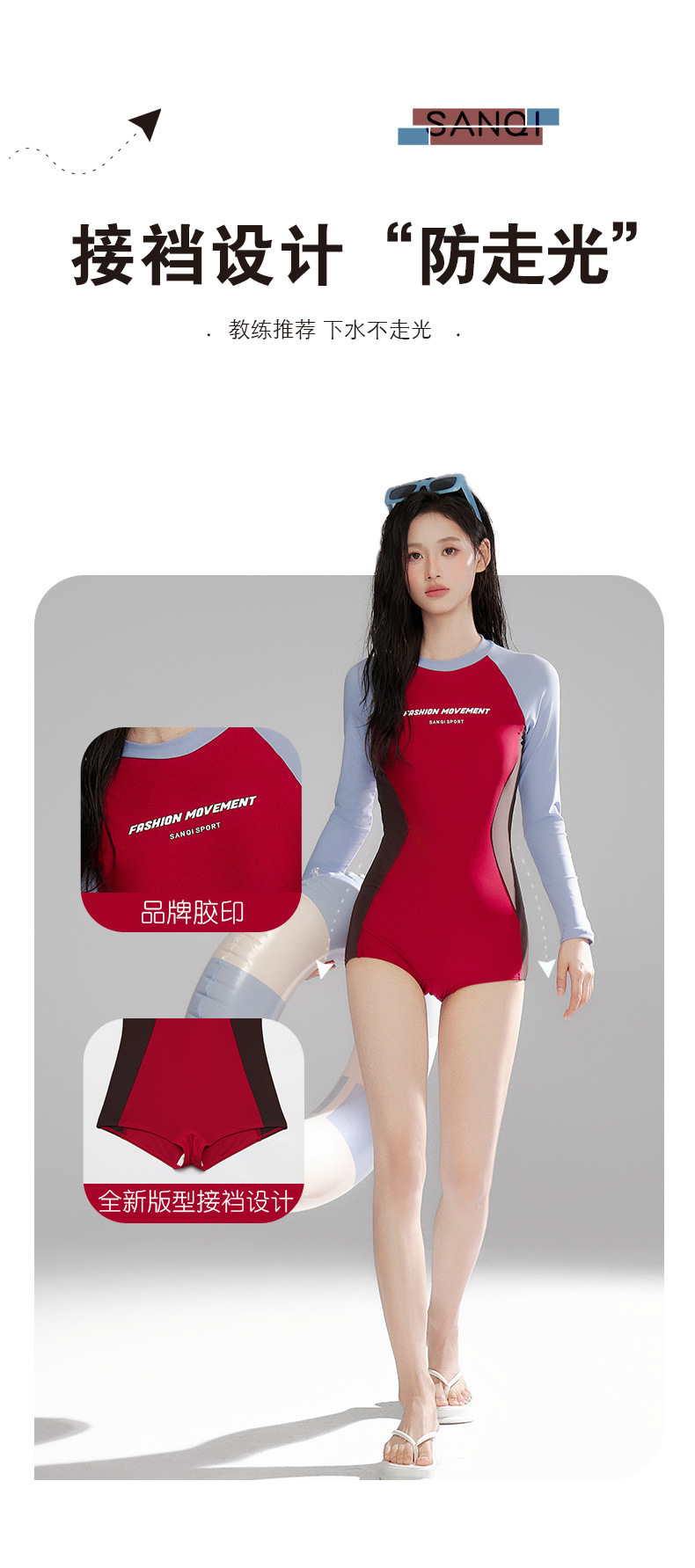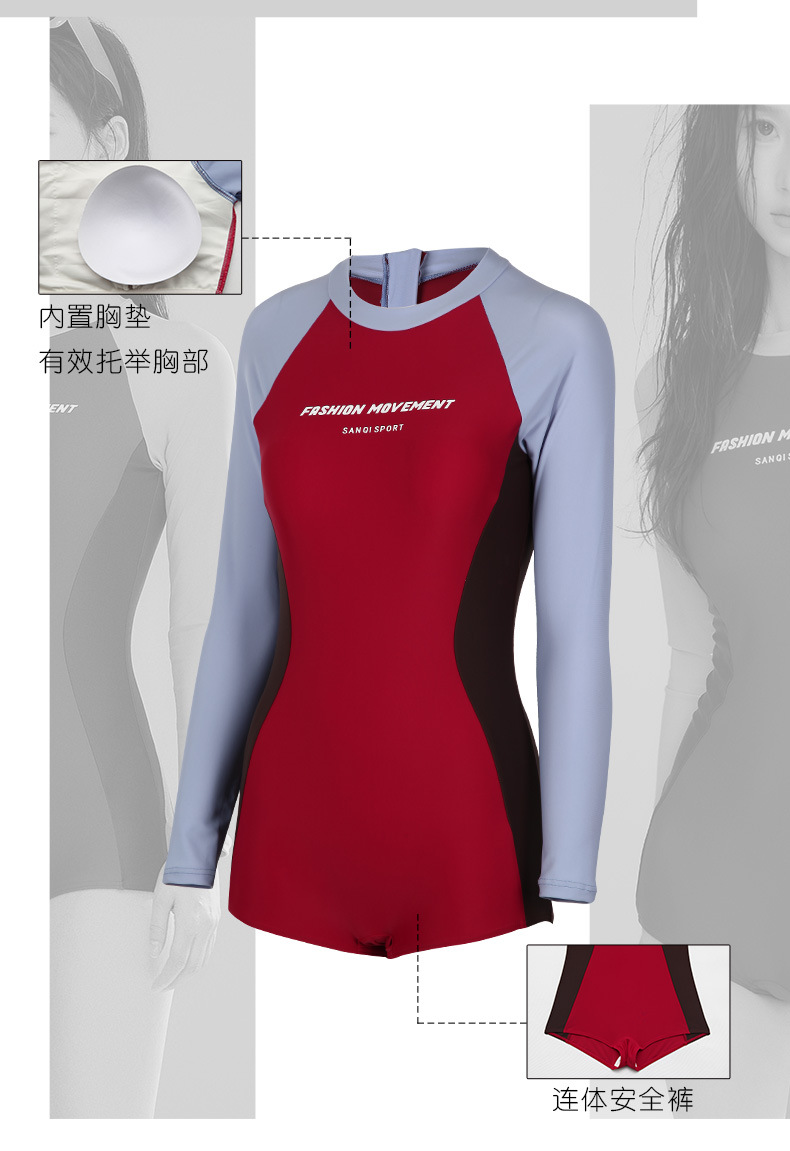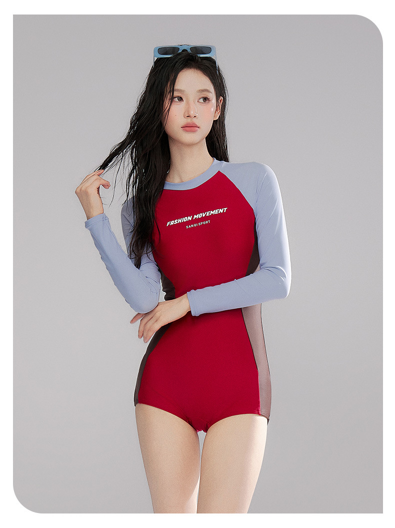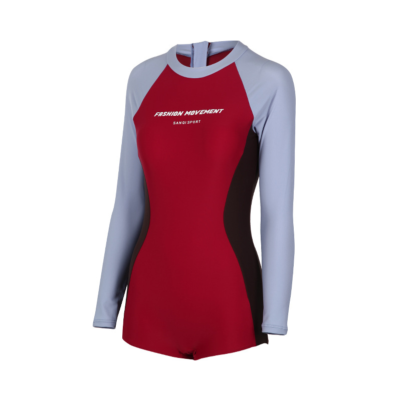 Sanqi 긴팔 선 스크린 수영복 여성의 2024 새로운 핫 스타일 결합 된 서퍼 의류 전문 스포츠 레이싱 수영복