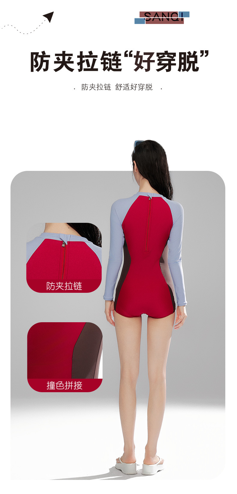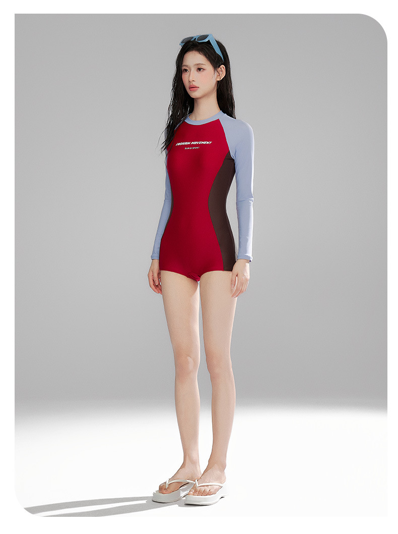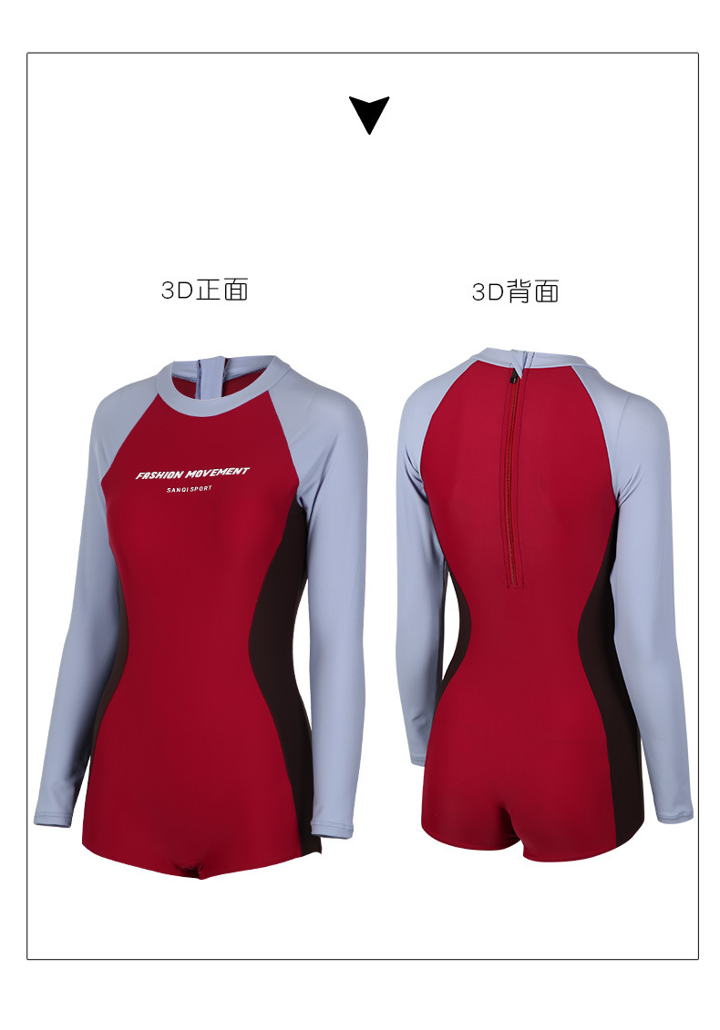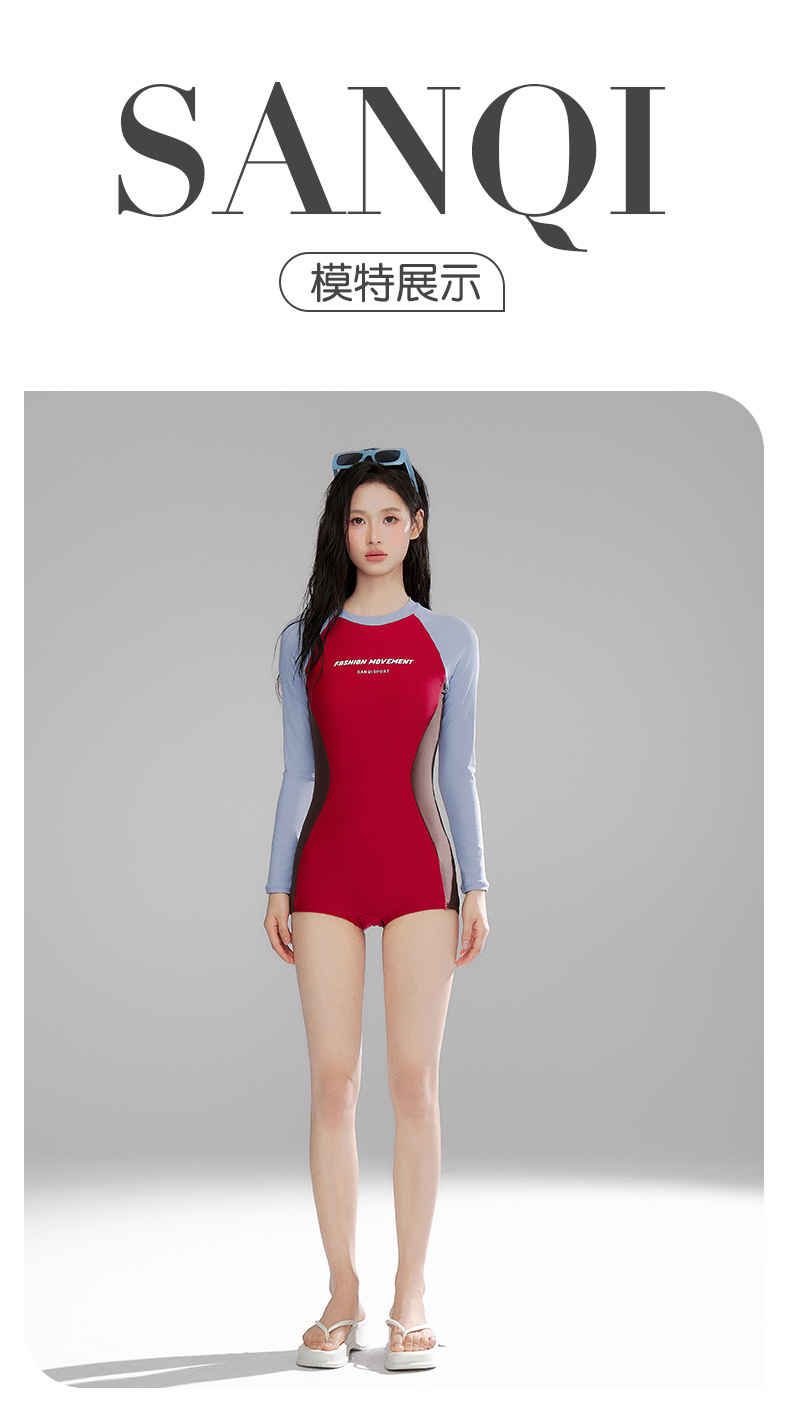 Sanqi 긴팔 선 스크린 수영복 여성의 2024 새로운 핫 스타일 결합 된 서퍼 의류 전문 스포츠 레이싱 수영복스토어 가기