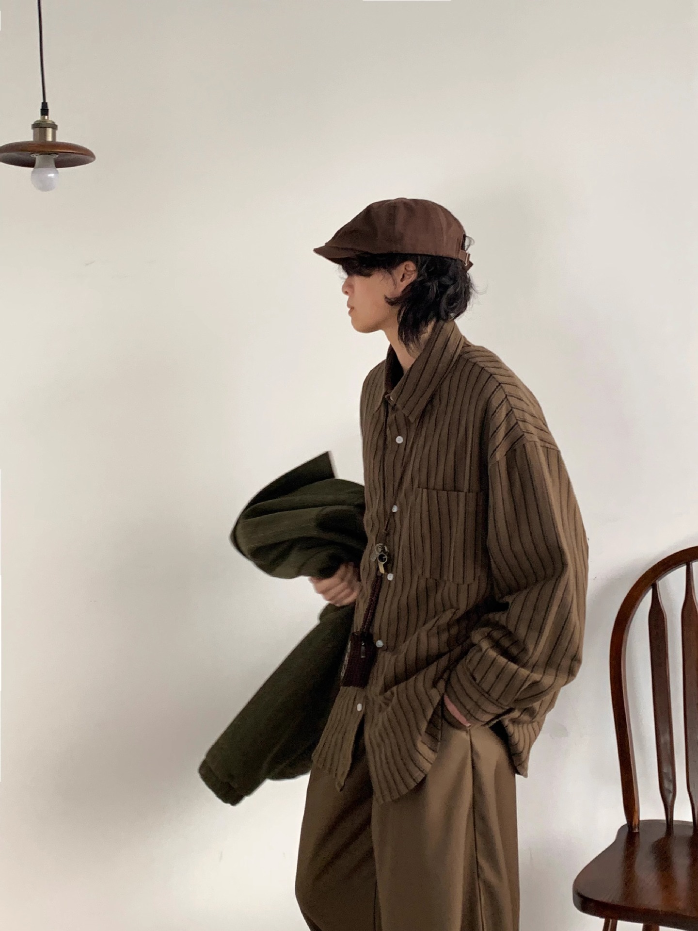 일본식 레트로 니치 스트라이프 긴 소매 셔츠 남자 2024 년 봄과 여름 새로운 느슨한 캐주얼 셔츠 코트 탑