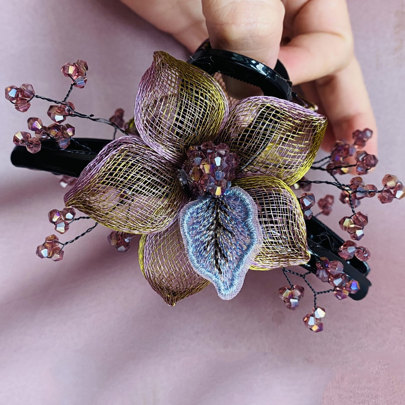 국경 간 고급 수제 구리 와이어 짠 꽃 클립 금속 클립 백 헤드 코일 헤어 큰 상어 클립 헤어 액세서리스토어 가기