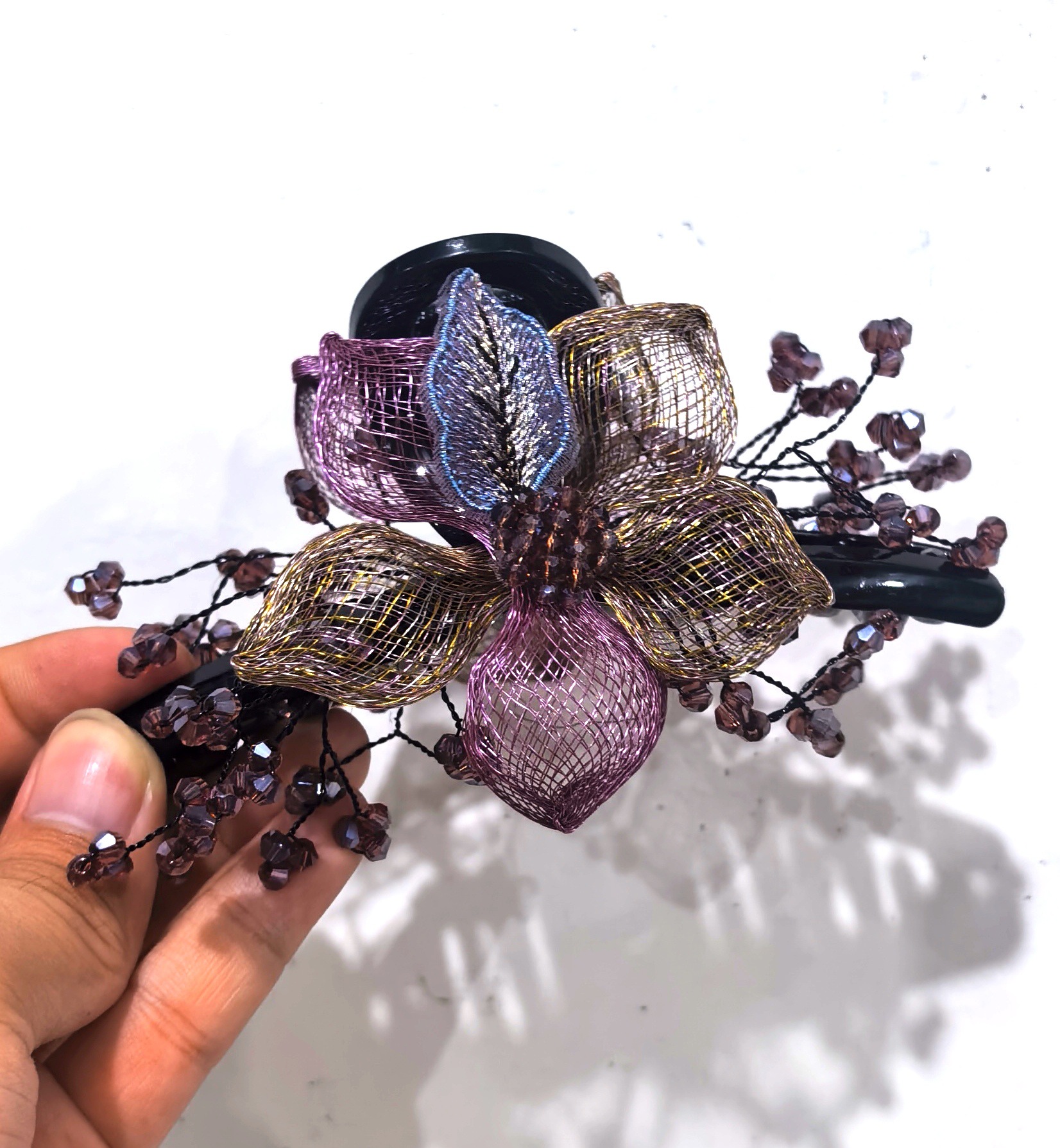 국경 간 고급 수제 구리 와이어 짠 꽃 클립 금속 클립 백 헤드 코일 헤어 큰 상어 클립 헤어 액세서리