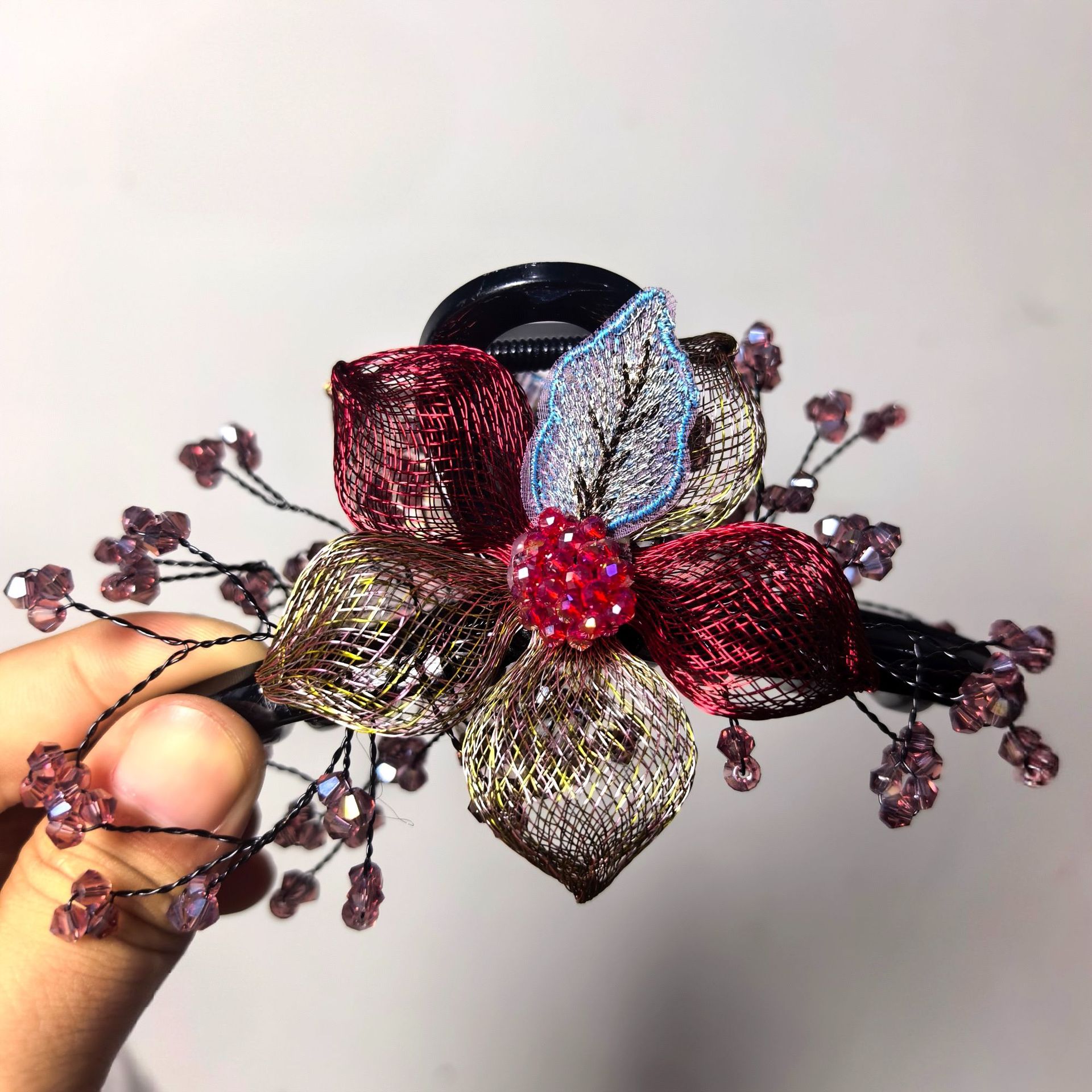 • 골드 + 레드 [구리 와이어 플라워 클립]