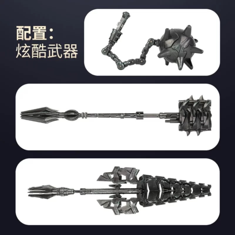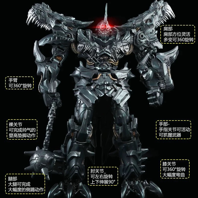 (人形态)1-头雕眼睛亮灯,下巴可动,2-双手可动,3-独立武器流星锤,4-尾巴变武器,并可以收纳在背后,5-合金件在脚掌部份,并填充了脚底空洞。