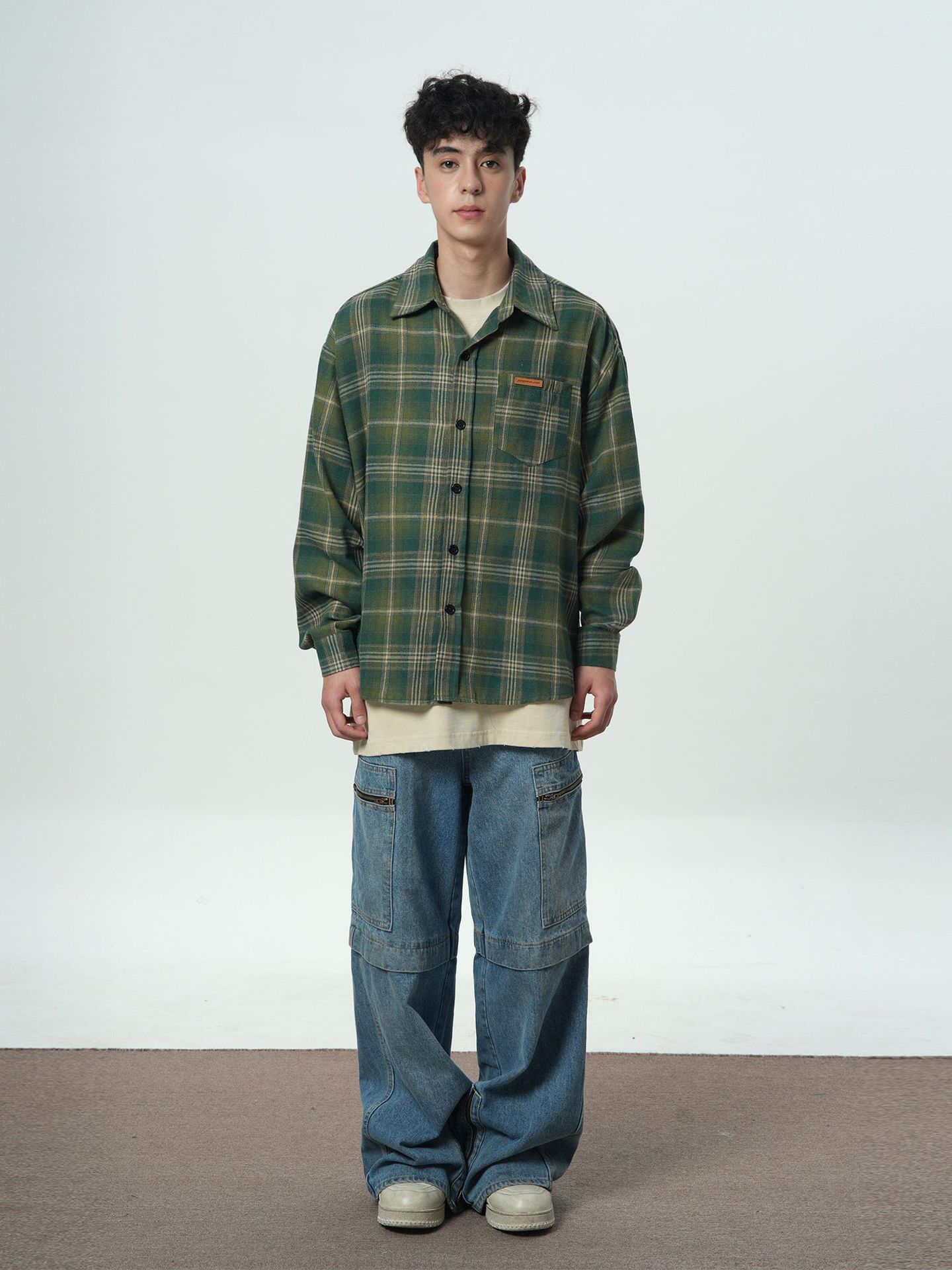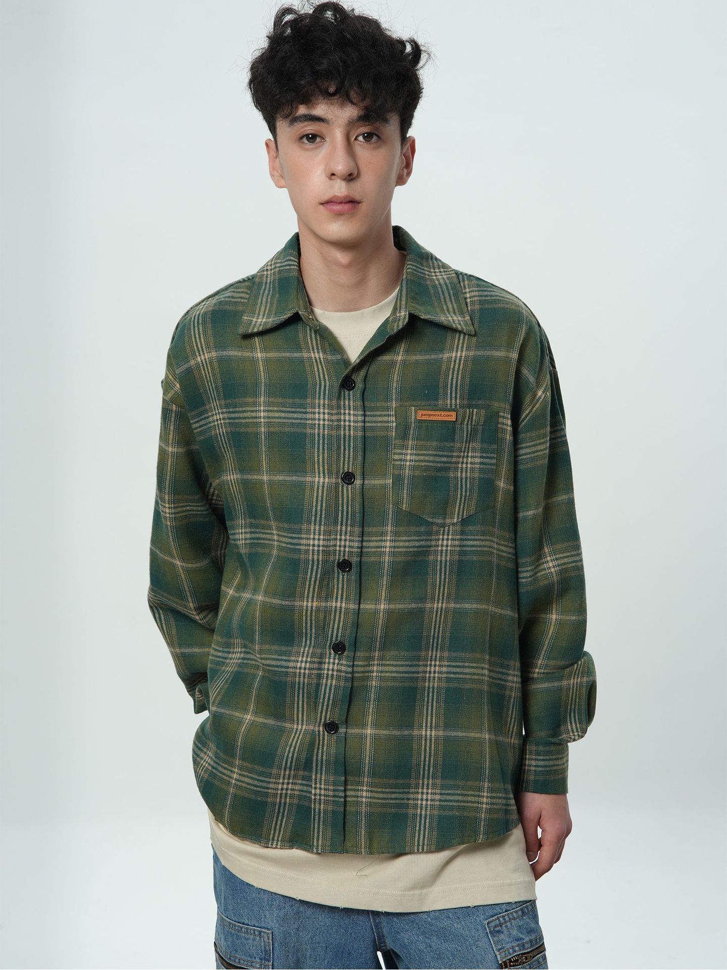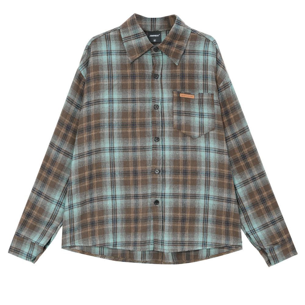 트렌디 한 브랜드 샌딩 플레이드 셔츠 남성 여름 새로운 복고풍 미국 스타일 느슨한 긴 소매 셔츠 커플 코트 탑스토어 가기