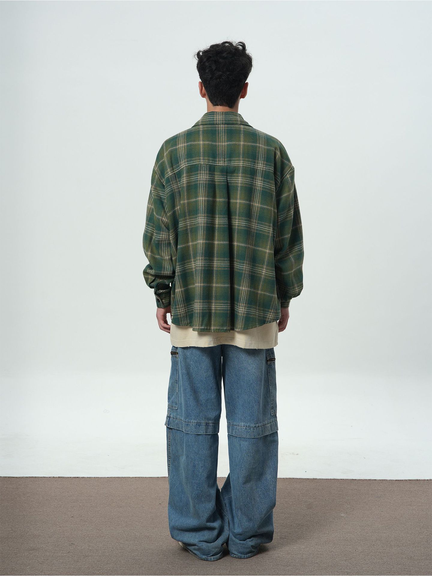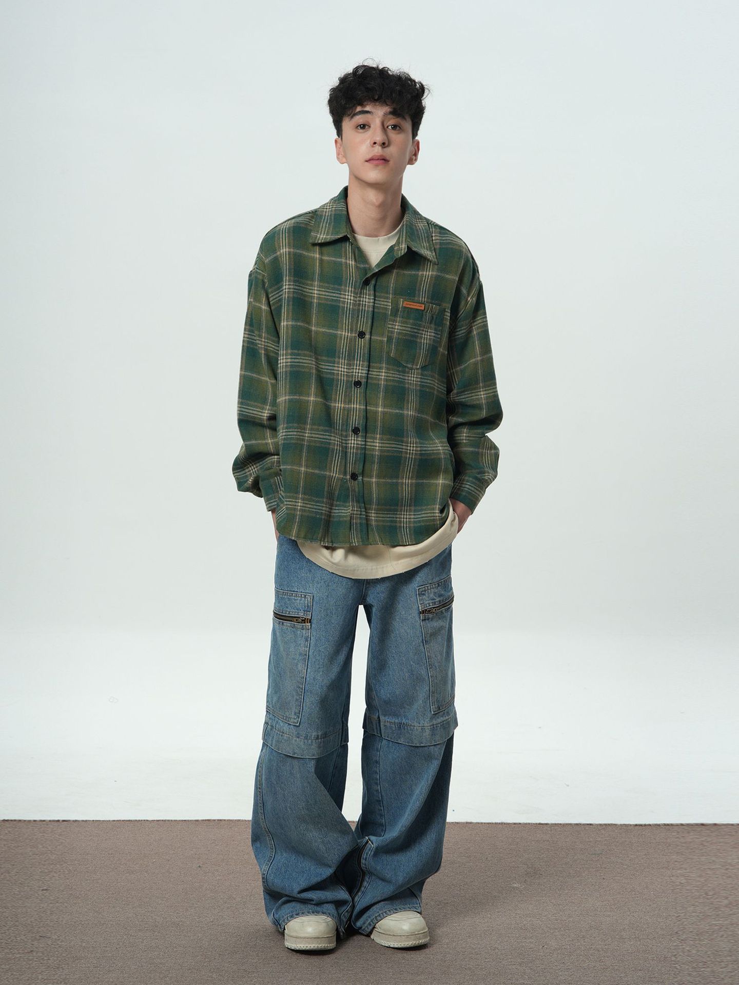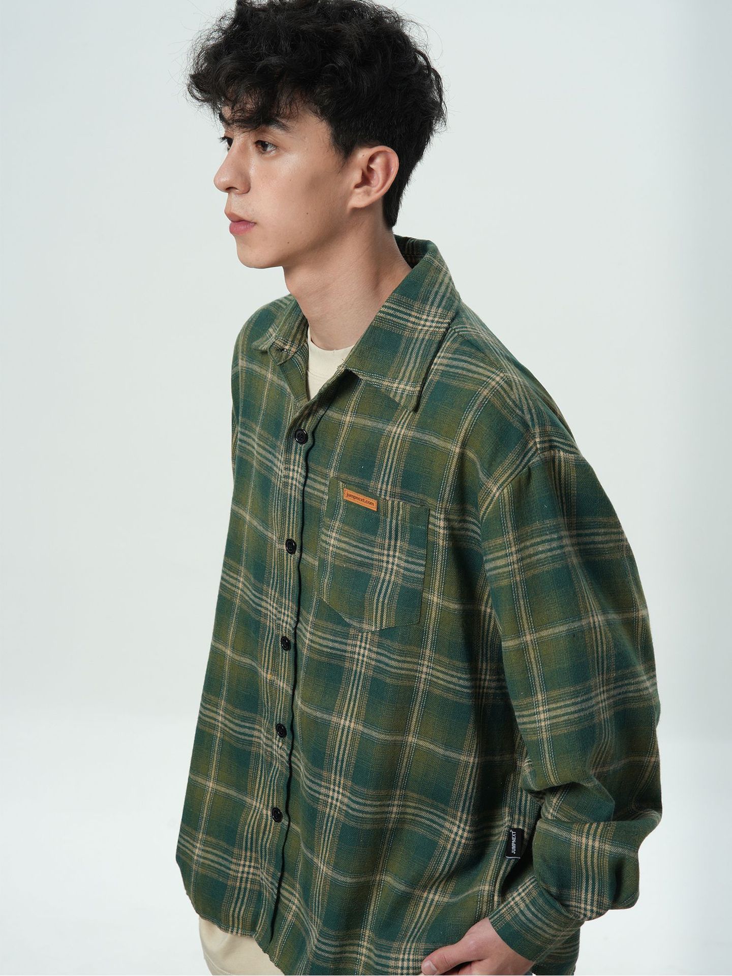트렌디 한 브랜드 샌딩 플레이드 셔츠 남성 여름 새로운 복고풍 미국 스타일 느슨한 긴 소매 셔츠 커플 코트 탑스토어 가기