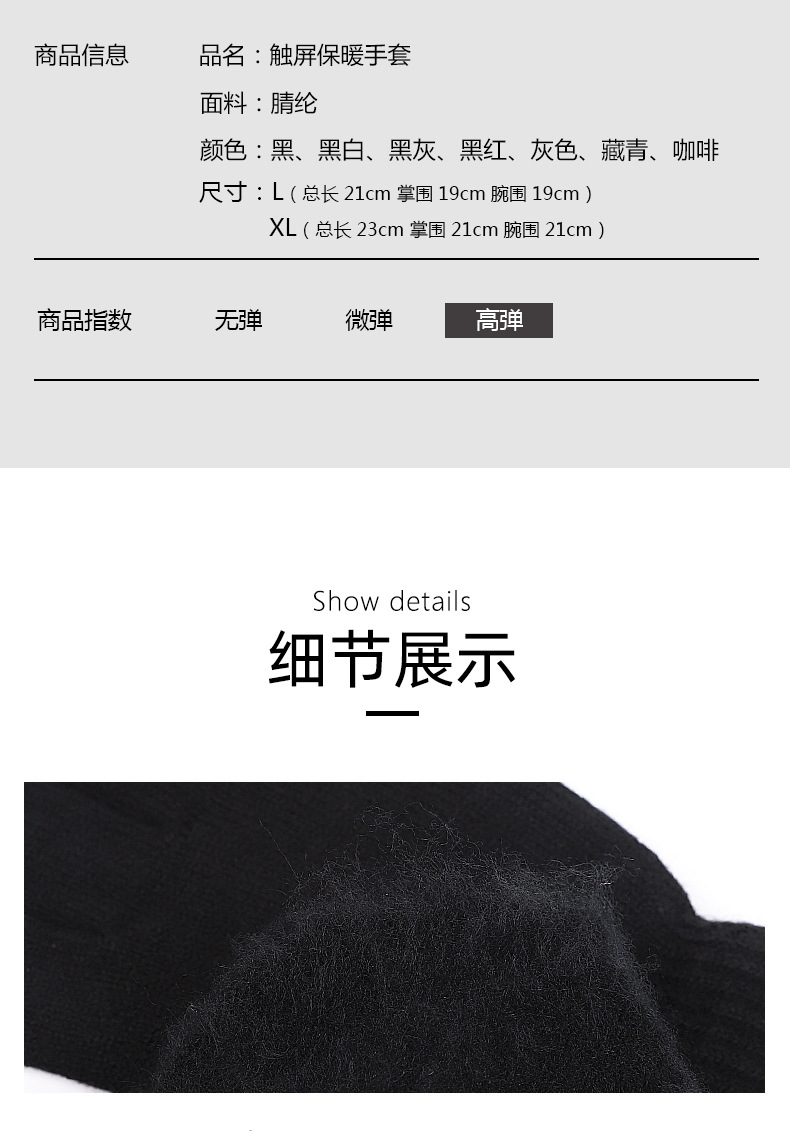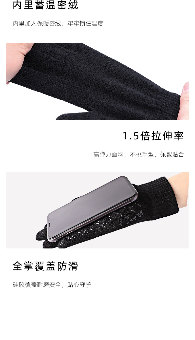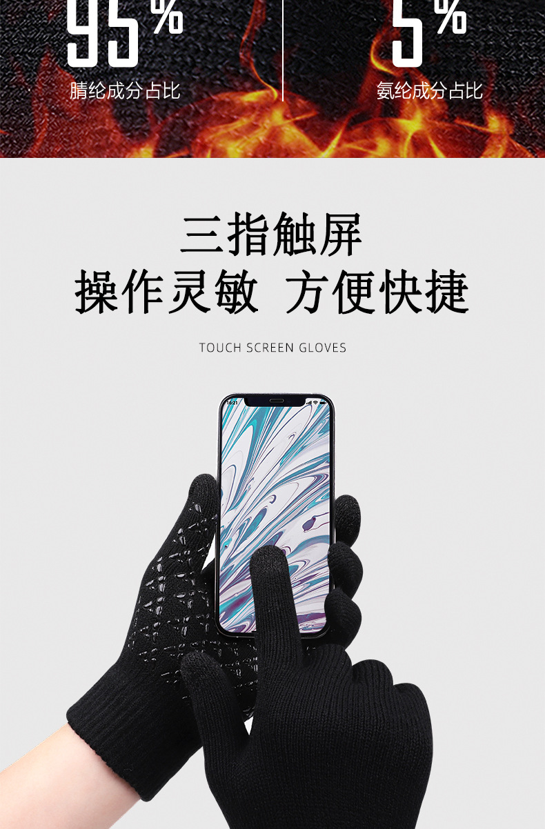 아크릴 검은 양모 장갑 기모 미끄럼 방지 터치 스크린 야외 승마 운전 가을과 겨울 추위스토어 가기