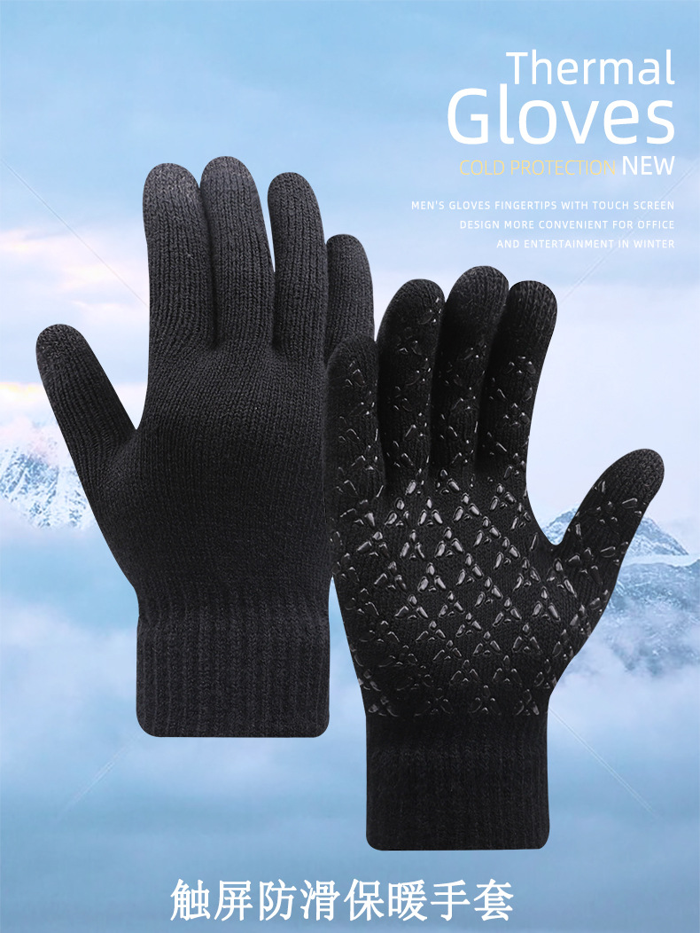 아크릴 검은 양모 장갑 기모 미끄럼 방지 터치 스크린 야외 승마 운전 가을과 겨울 추위