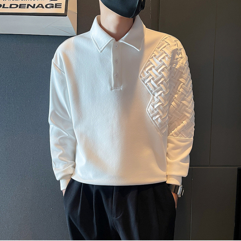 남자 스웨터 봄과 가을 2024 새로운 폴로 셔츠 남성용 러피 잘 생긴 봄 코트 긴팔 티셔츠 남성스토어 가기