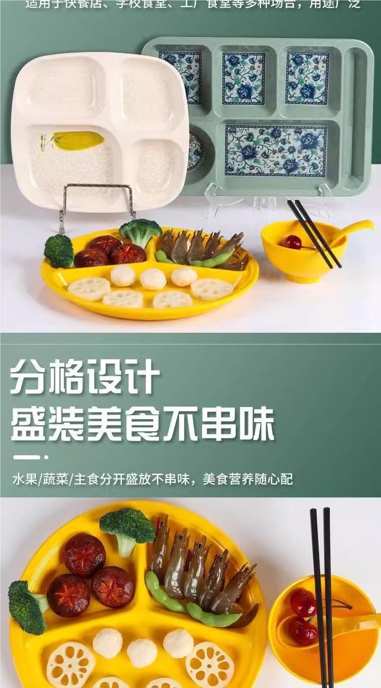 두꺼운 패스트 푸드 플레이트 분할 디너 플레이트 상업용 멜라민 식기 플라스틱 직사각형 6 칸 공장 학교 매점 디너 플레이트