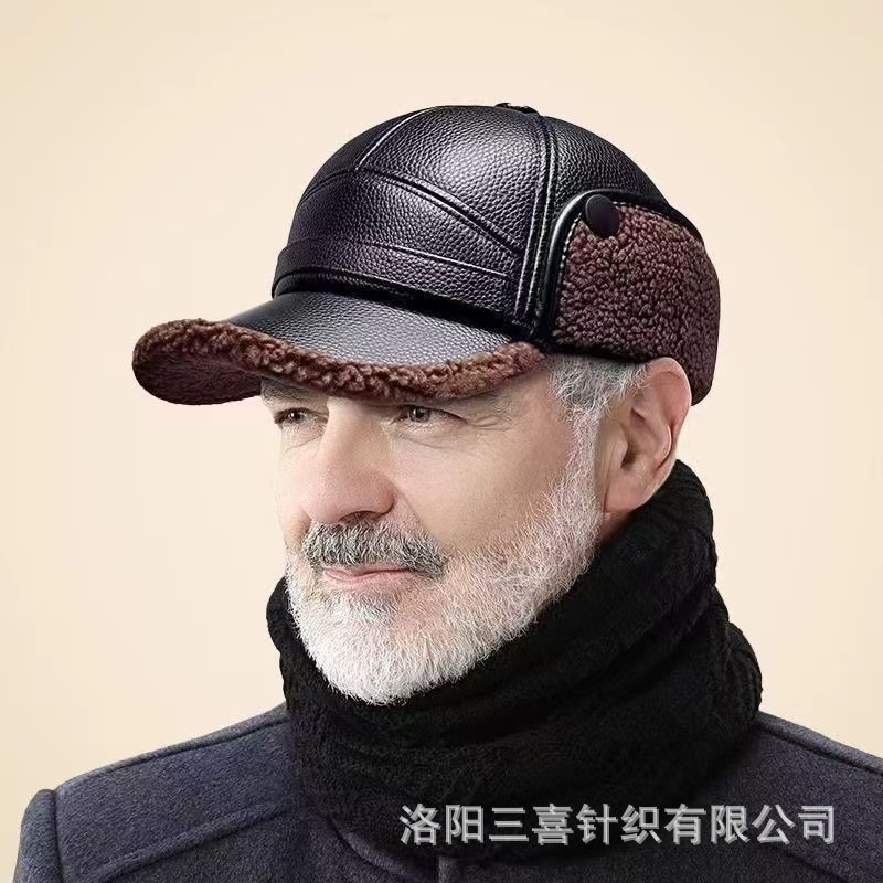 겨울노인캡, 중노인모자, 가죽모자, 남자할아버지 겨울따뜻한모자, 아빠 귀보호모자