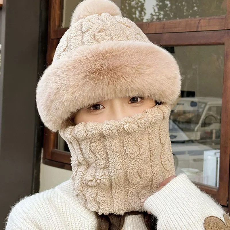 • 자카드 폼폼 비니 – 카키