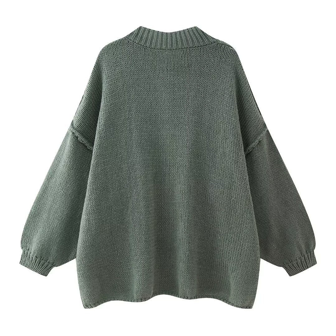 유럽과 미국 스타일의 여성 프랑스 패션 느슨한 라운드 넥 올 매치 메탈 버튼 카디건 스웨터 블랙