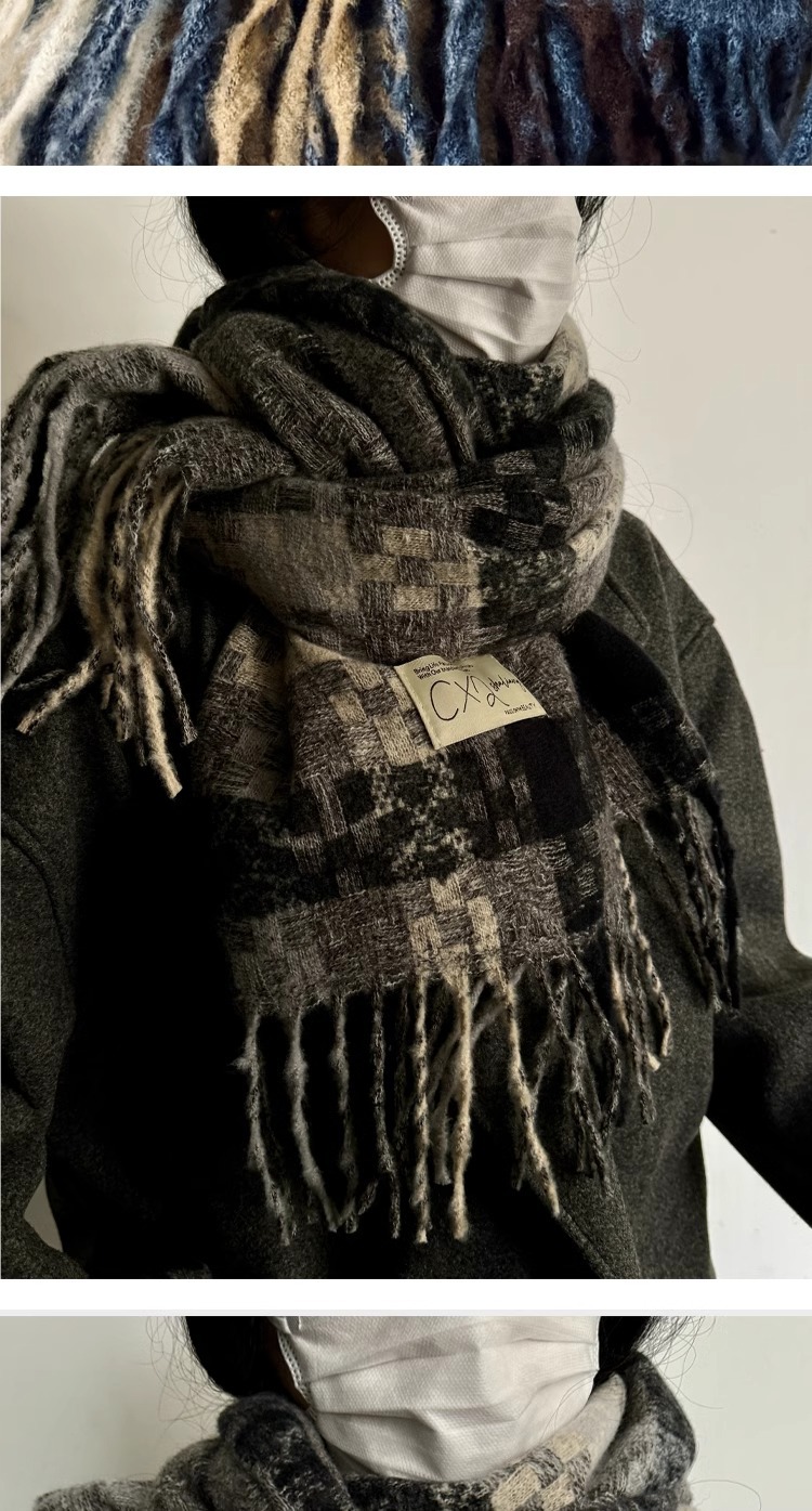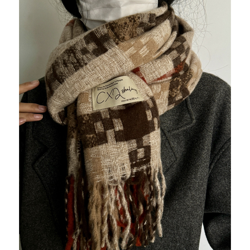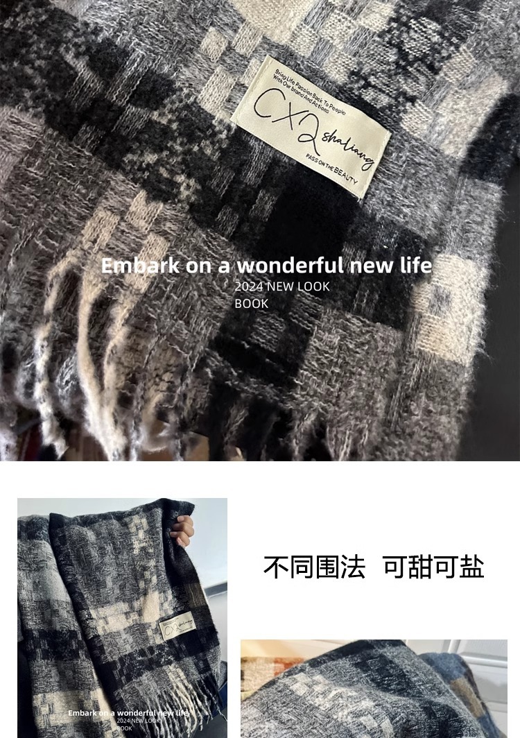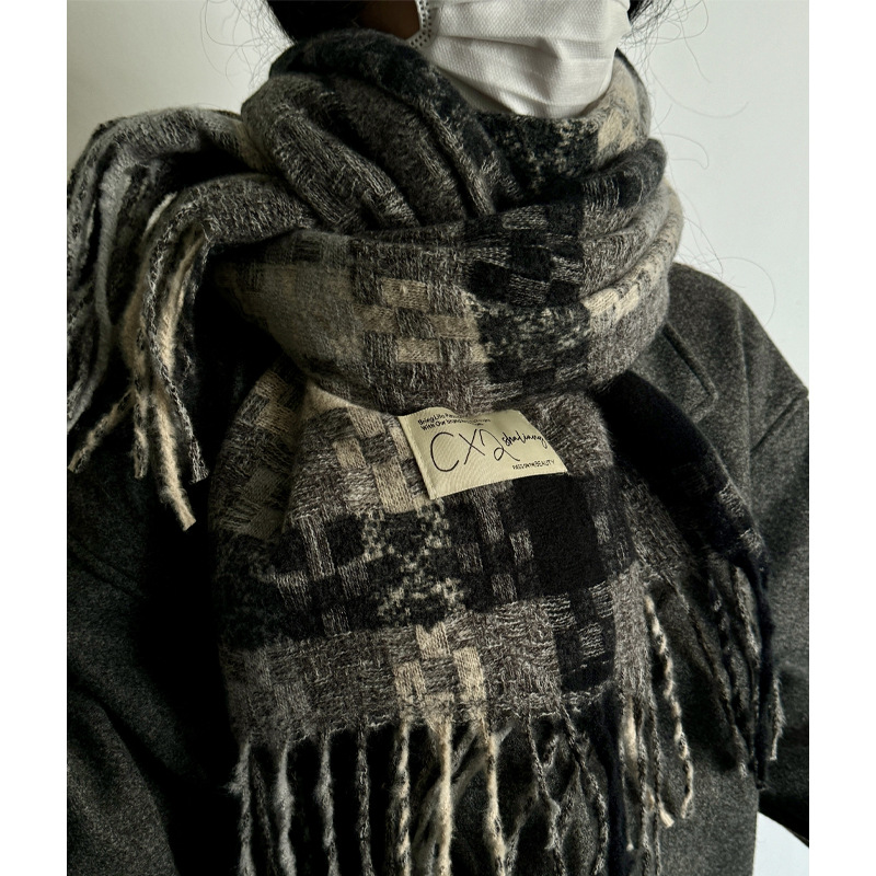 2024 새로운 한국 스타일 분위기 감각 격자 술 스카프 여성의 가을과 겨울 두꺼운 따뜻한 올 매치 커플의 스카프 패션스토어 가기
