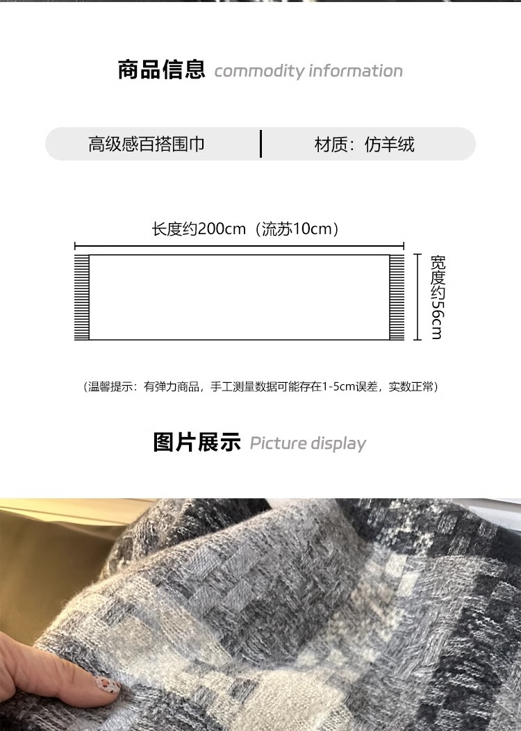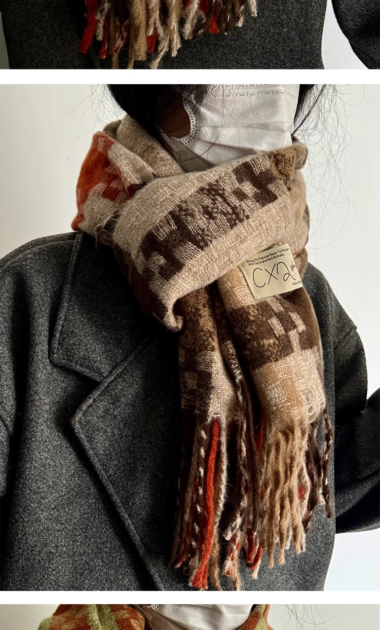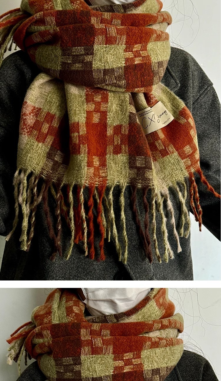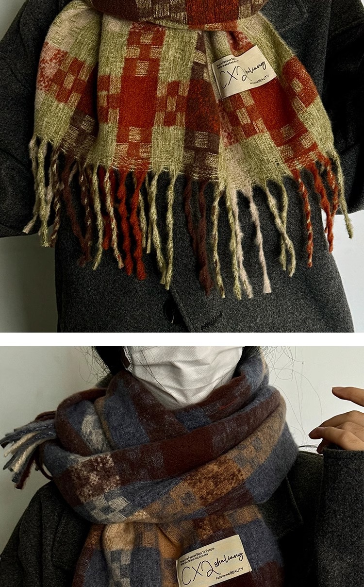 2024 새로운 한국 스타일 분위기 감각 격자 술 스카프 여성의 가을과 겨울 두꺼운 따뜻한 올 매치 커플의 스카프 패션스토어 가기