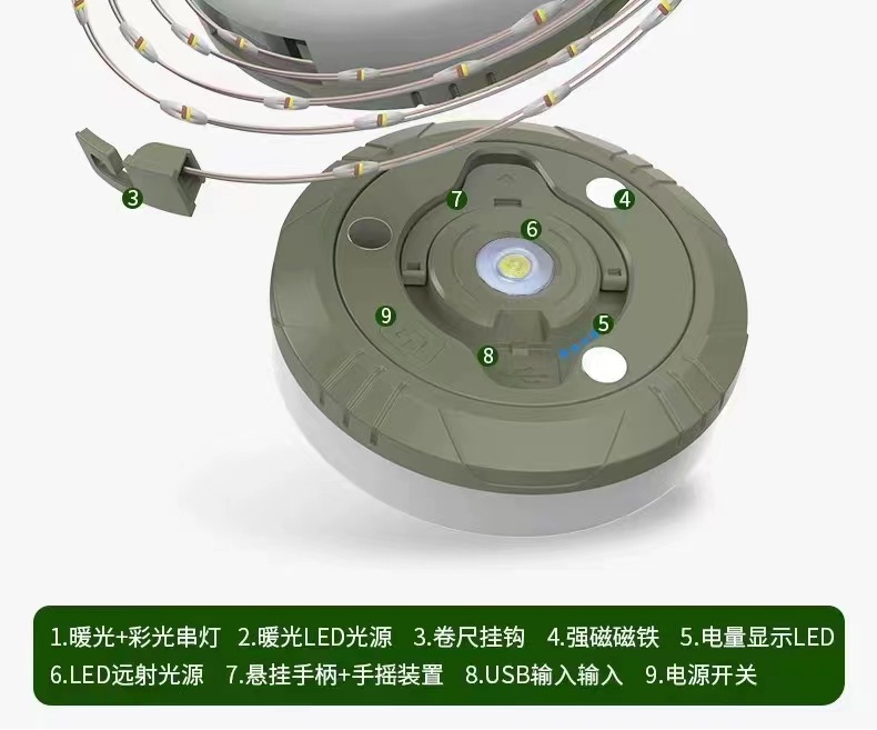야외 조명 분위기 캠핑 램프 다기능 캠핑 램프 다채로운 텐트 라이트 스트링 수축 램프 줄자 손전등 스트링 라이트