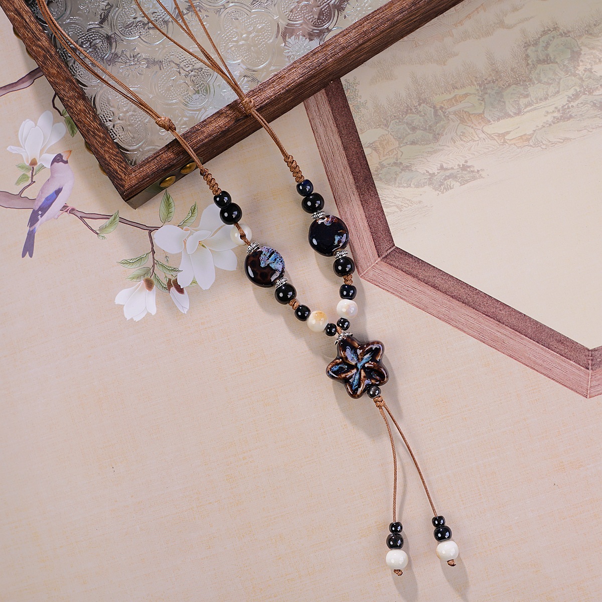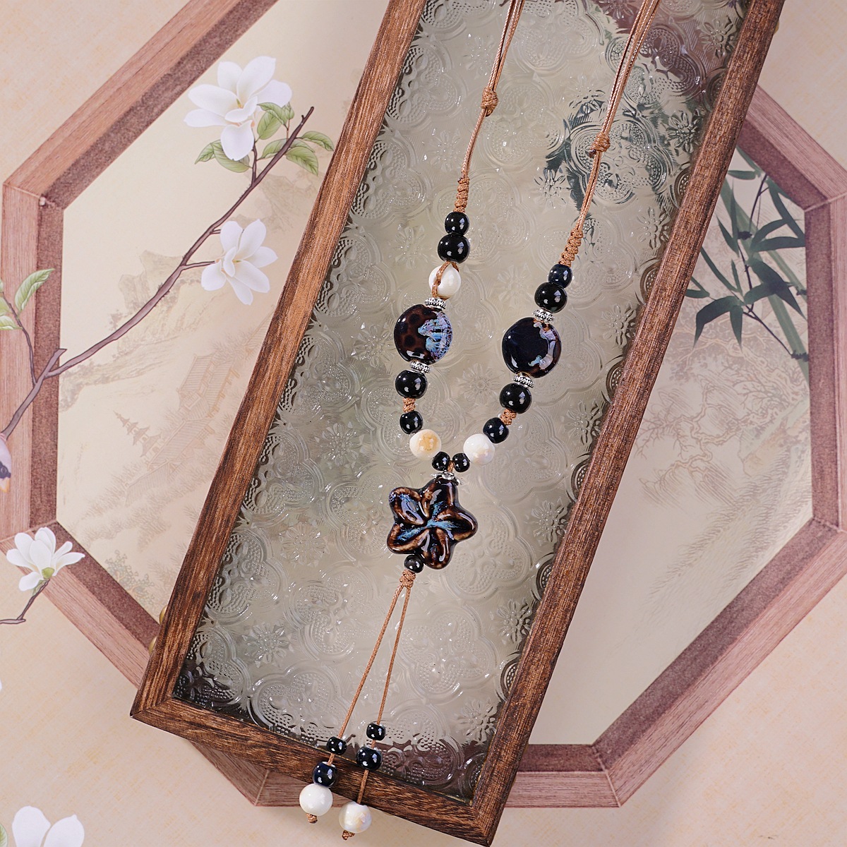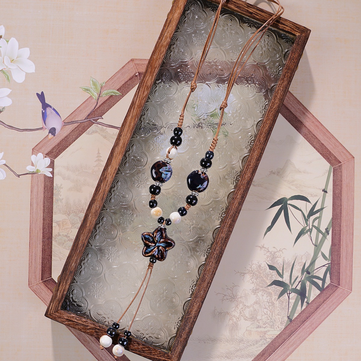 Jingdezhen 세라믹 목걸이 여성 빛 럭셔리 틈새 가을 및 겨울 민족 스타일 스웨터 목걸이 여성 국경 보석 공장 직접 판매스토어 가기