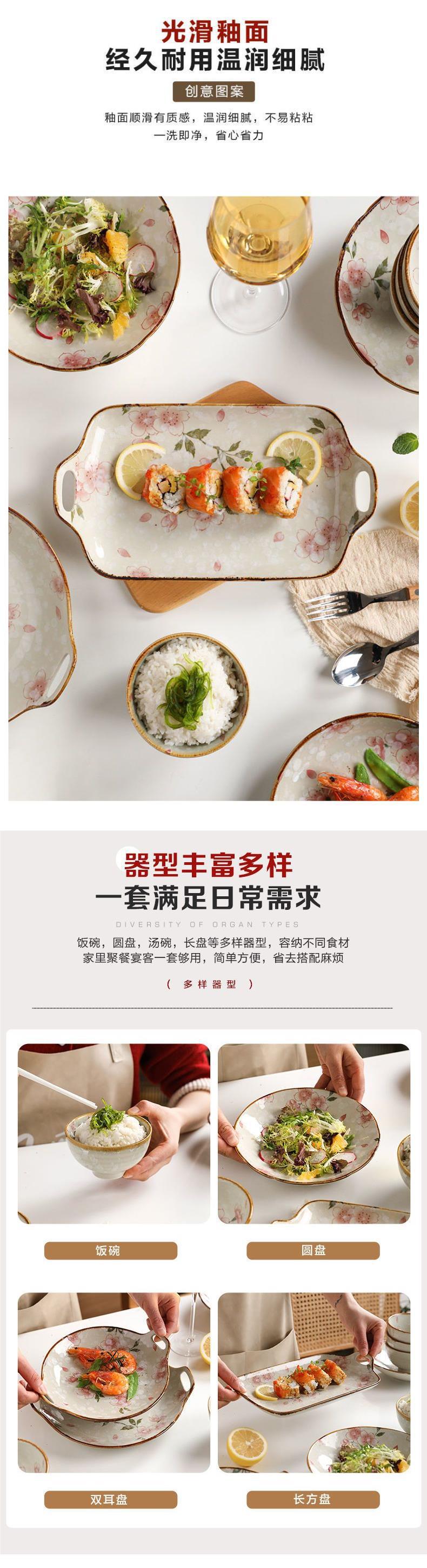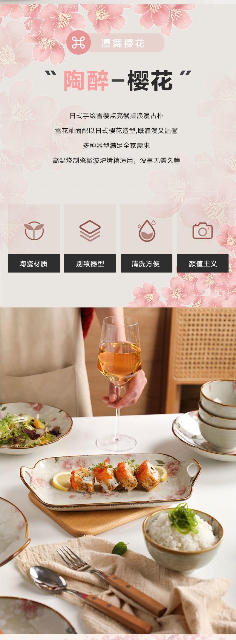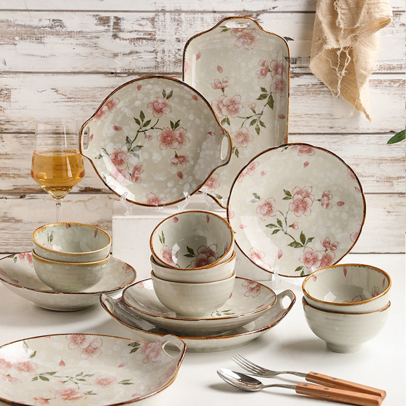 일본식 벚꽃 세라믹 식기 요리 및 접시 가정용 창조적 인 밥 그릇 요리 단일 쌍안경 어판
