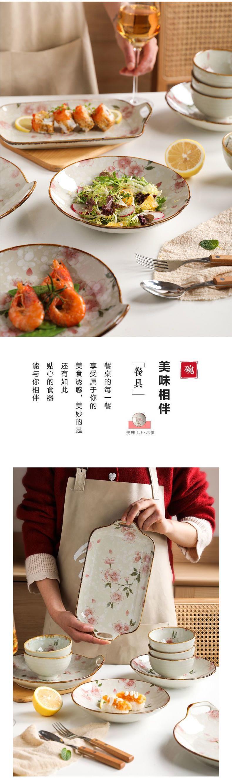 일본식 벚꽃 세라믹 식기 요리 및 접시 가정용 창조적 인 밥 그릇 요리 단일 쌍안경 어판스토어 가기