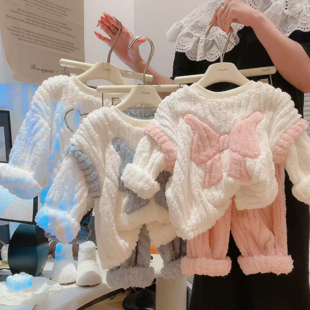 어린이 산호 벨벳 잠옷 세트 가을 겨울 2024 신상 여아 플란넬 홈웨어 두꺼운 겨울 신상스토어 가기