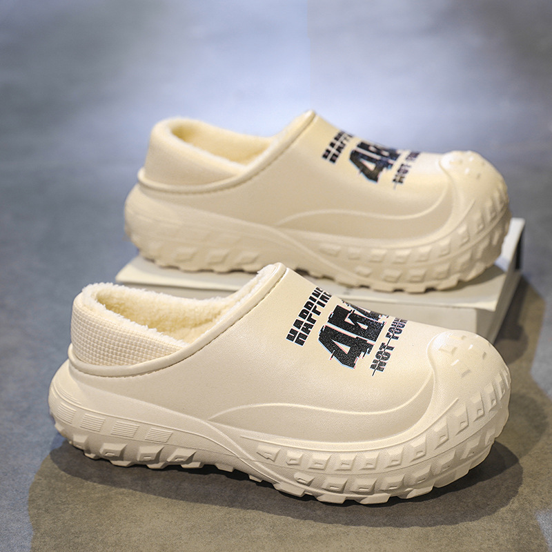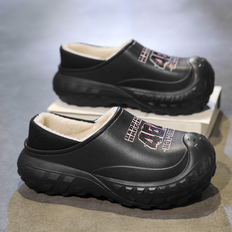 겨울 새로운 두꺼운 높이 증가 코튼 신발 배설물 느낌 미끄럼 방지 틈새 기모 야외 코튼 슬리퍼 남성 신발 따뜻한 코튼 신발스토어 가기