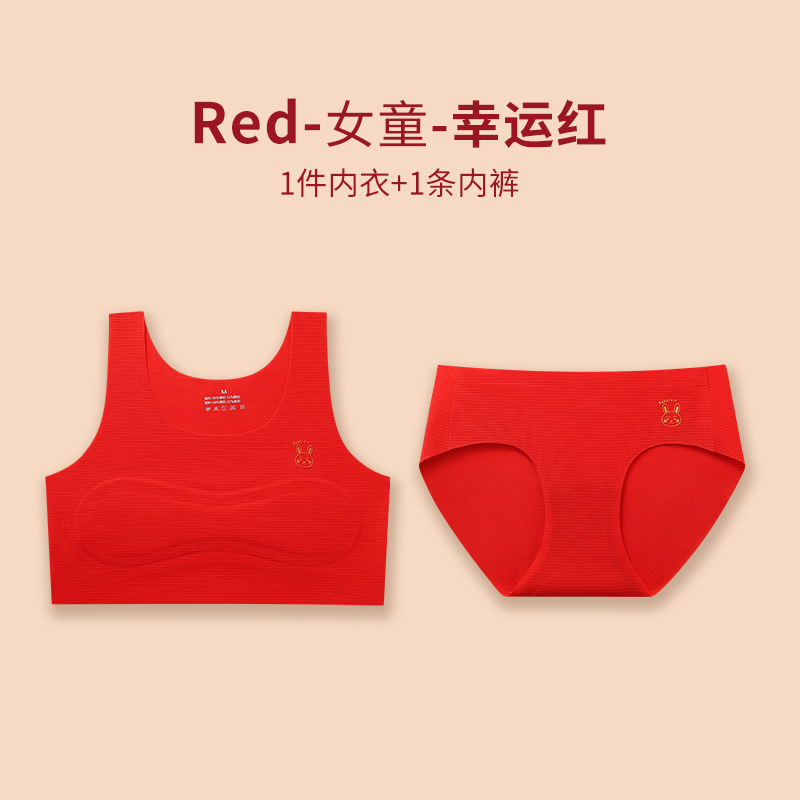 새해 포춘 개발 소녀 속옷 벤 라이프 레드 더블 안티 범프 걸스 조끼 브래지어 세트 도매